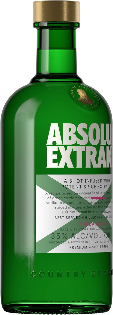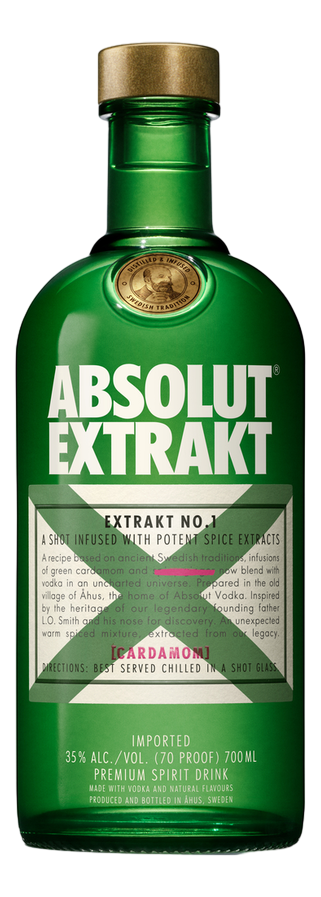 Absolut Extrakt - это сочетание приятного сладковатого вкуса зеленого кардамона с пряным теплым послевкусием. Кроме того, Extrakt - это высочайший уровень качества, присущий бренду. Дизайн продукта - это современная интерпретация иконичной бутылки Absolut, вдохновленной старинным аптечным флаконом. Изготавливается только из натуральных ингредиентов. Отлично пьется шотами или смешивается, например, с колой или тоником.