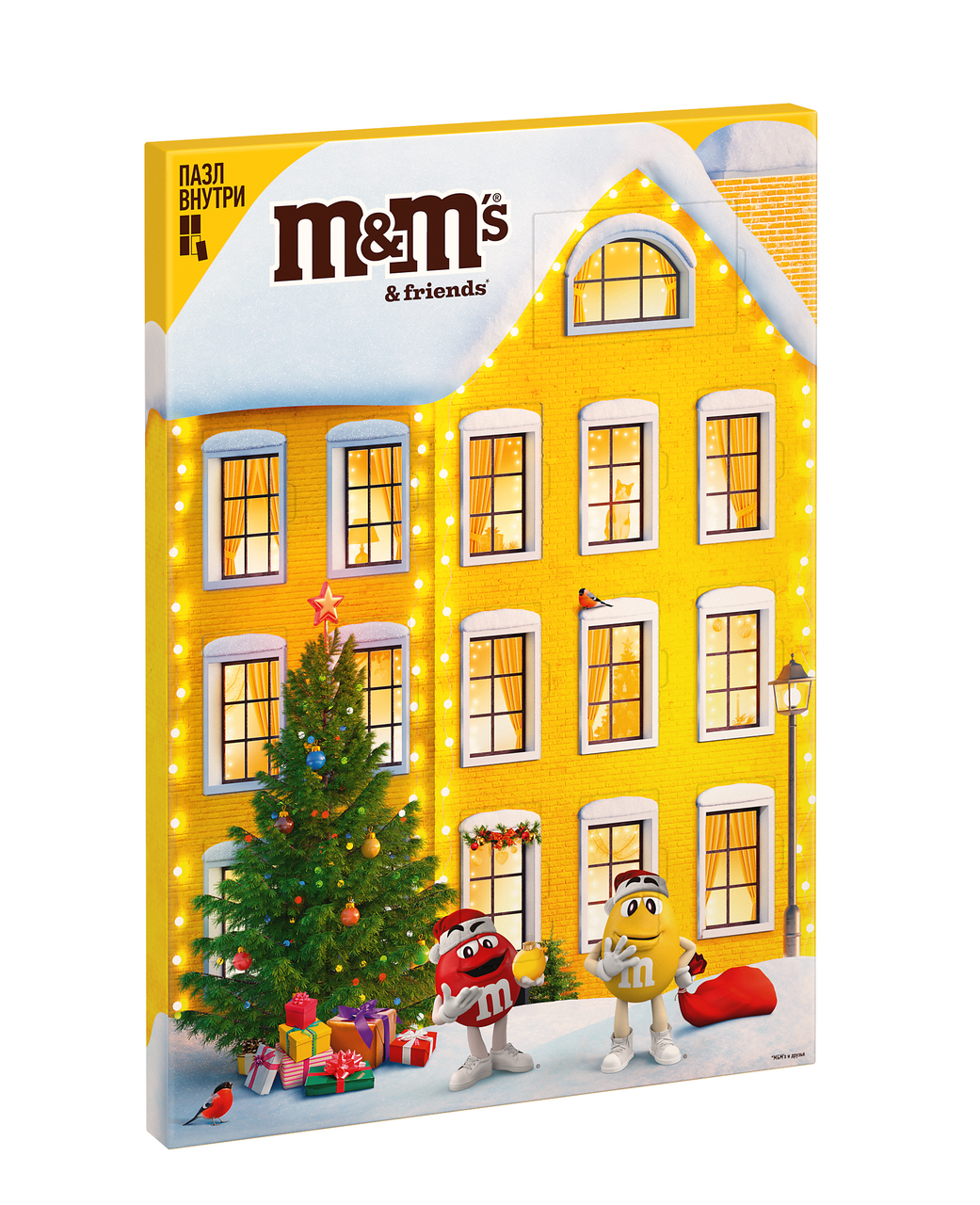 Подарочный набор M&M’s & Friends на Новый Год - это адвент-календарь, оформленный в виде новогоднего дома, добавит элемент ожидания и радости в преддверии праздника. В наборе представлены любимые бренды M&M's, Snickers, Twix, Bounty, Milky Way, Mars. - Яркая упаковка с любимыми героями M&M's сделает каждый день ожидания праздника особенным и наполнит его волшебством;- Удобный формат индивидуального подарка, который позволяет поделиться новогодним настроением с близкими;- Внутри находятся 16 окошек, за каждым из которых скрывается кусочек паззла, что добавит элемент игры в преддверии праздника.