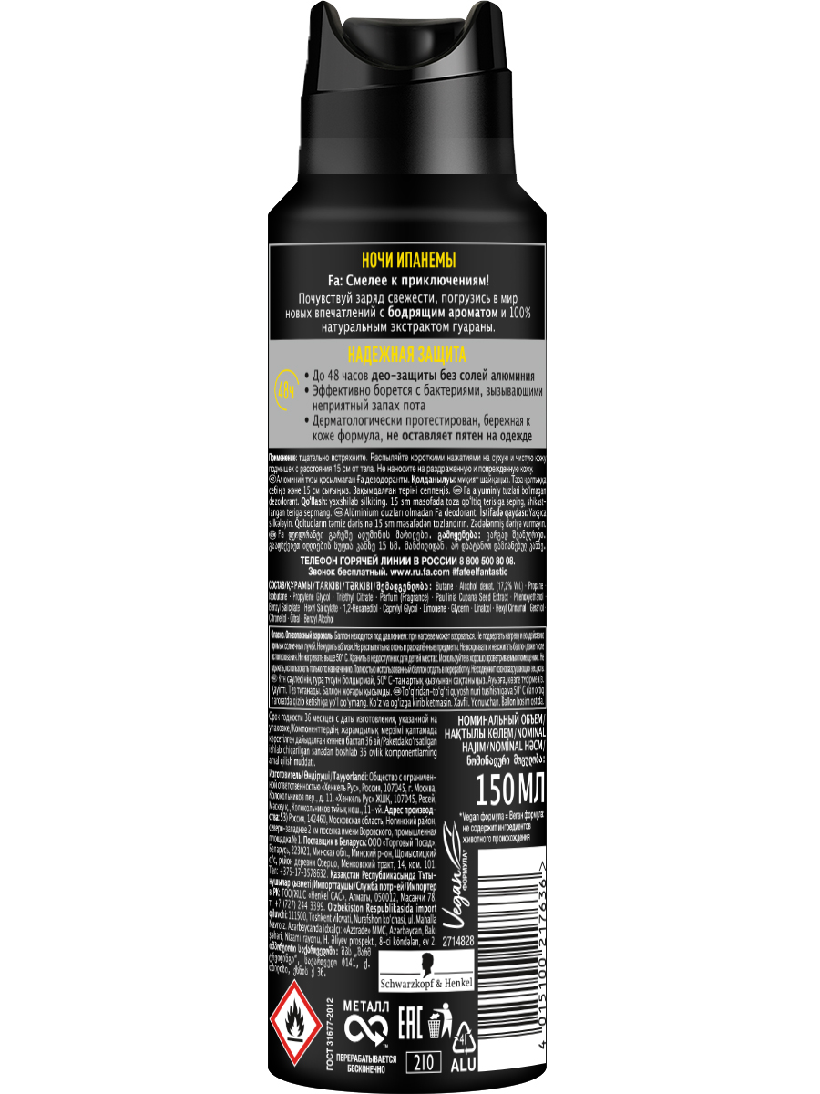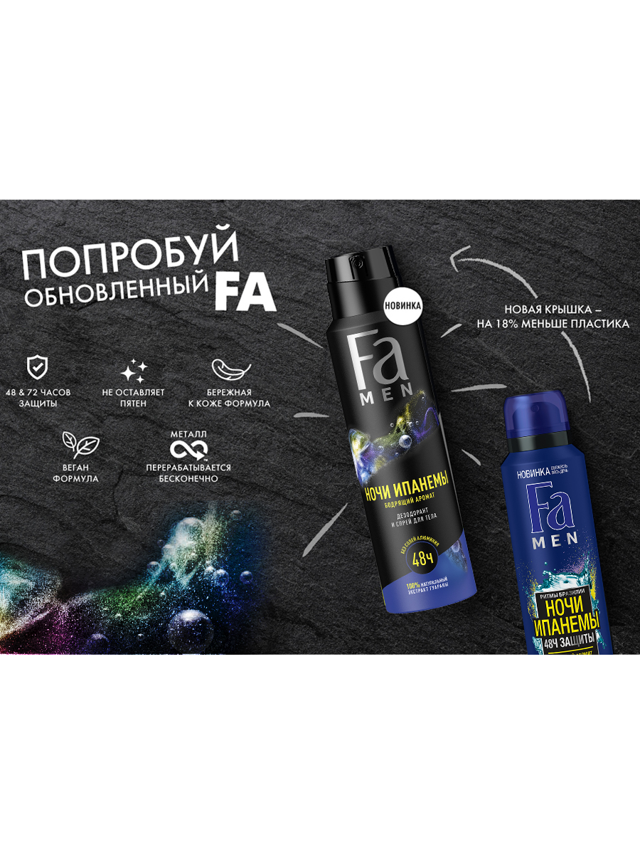 Дезодорант-аэрозоль Фа Men Ночи Ипанемы Бодрящий аромат, 150мл
