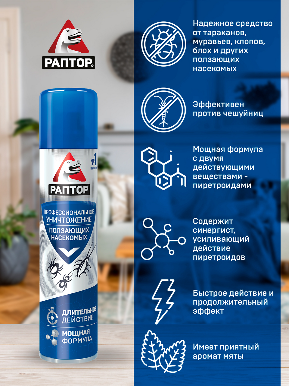 Аэрозоль Раптор от ползающих насекомых, 350мл