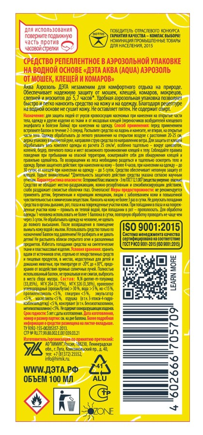 Аэрозоль-репеллент Дэта Аква от мошек, клещей и комаров, 100мл