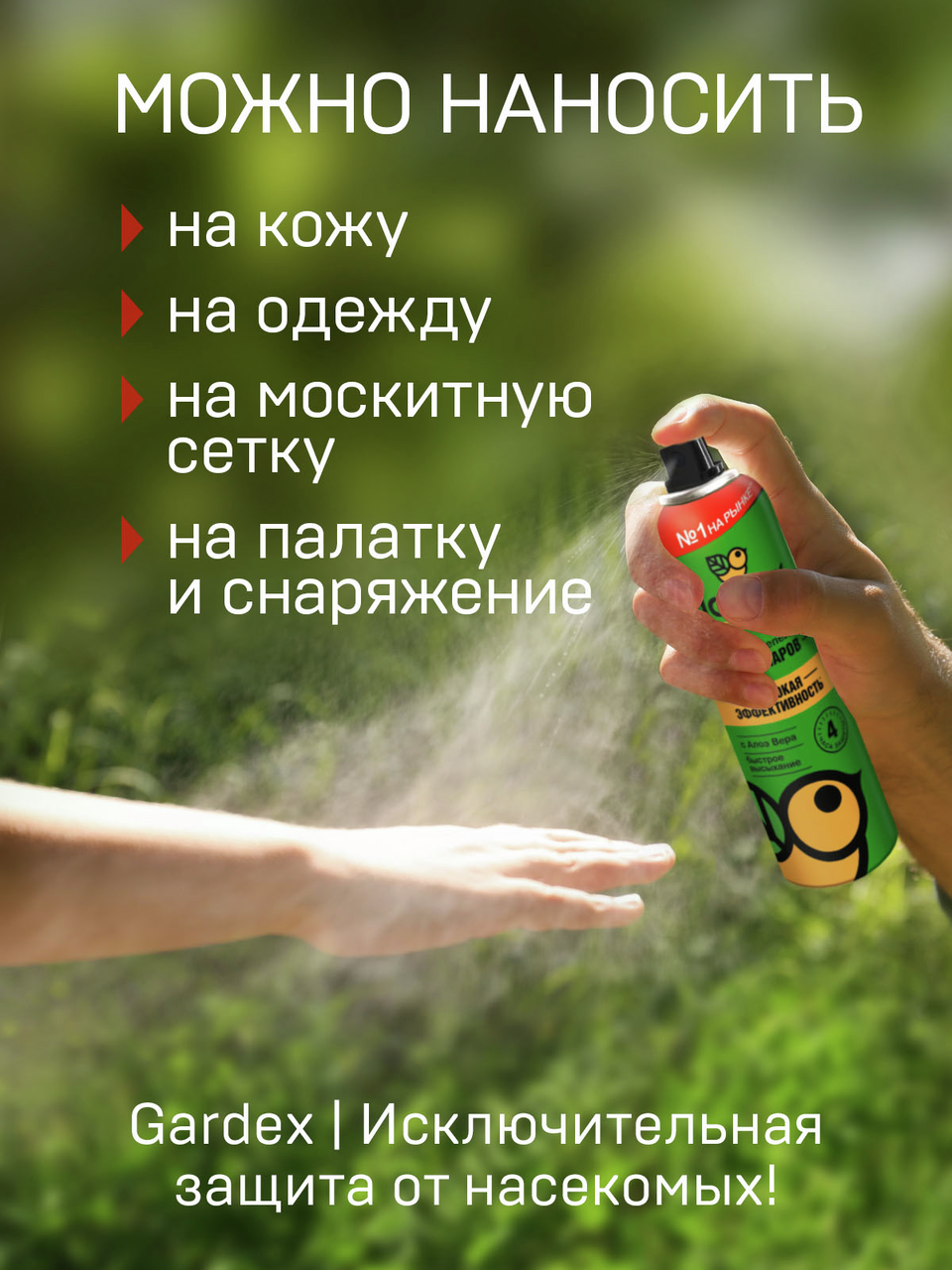 Аэрозоль-репеллент Gardex "Family" является надежным защитником от летающих кровососущих насекомых - комаров, мокрецов, москитов, мошек, слепней и блох. Благодаря уникальному водному раствору, не оставляет жирных следов на коже и одежде, обладает приятным запахом. Экстракт алоэ вера смягчает действие репеллента, защищая кожу и ухаживая за ней. Можно наносить на открытые участки кожи, на одежду и снаряжение только из натуральных тканей.