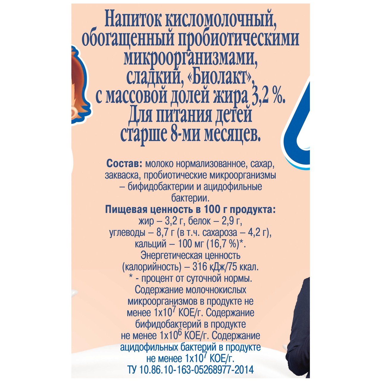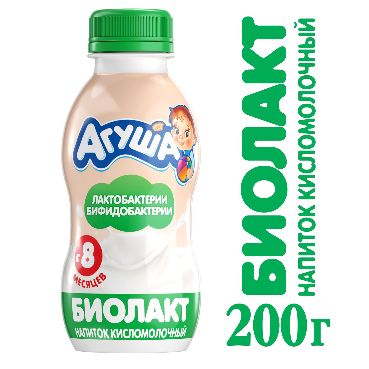 Напиток АГУША Биолакт с 8 месяцев кисломолочный 3,2%, 200г