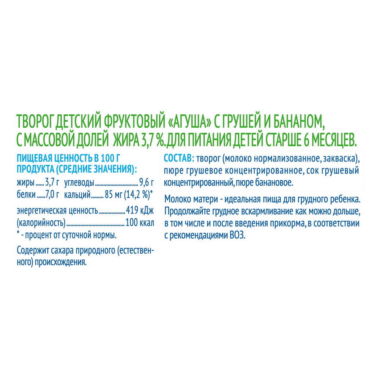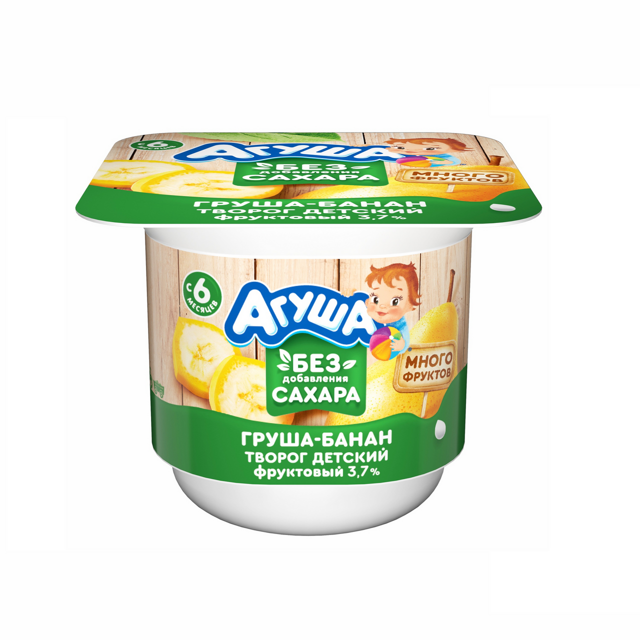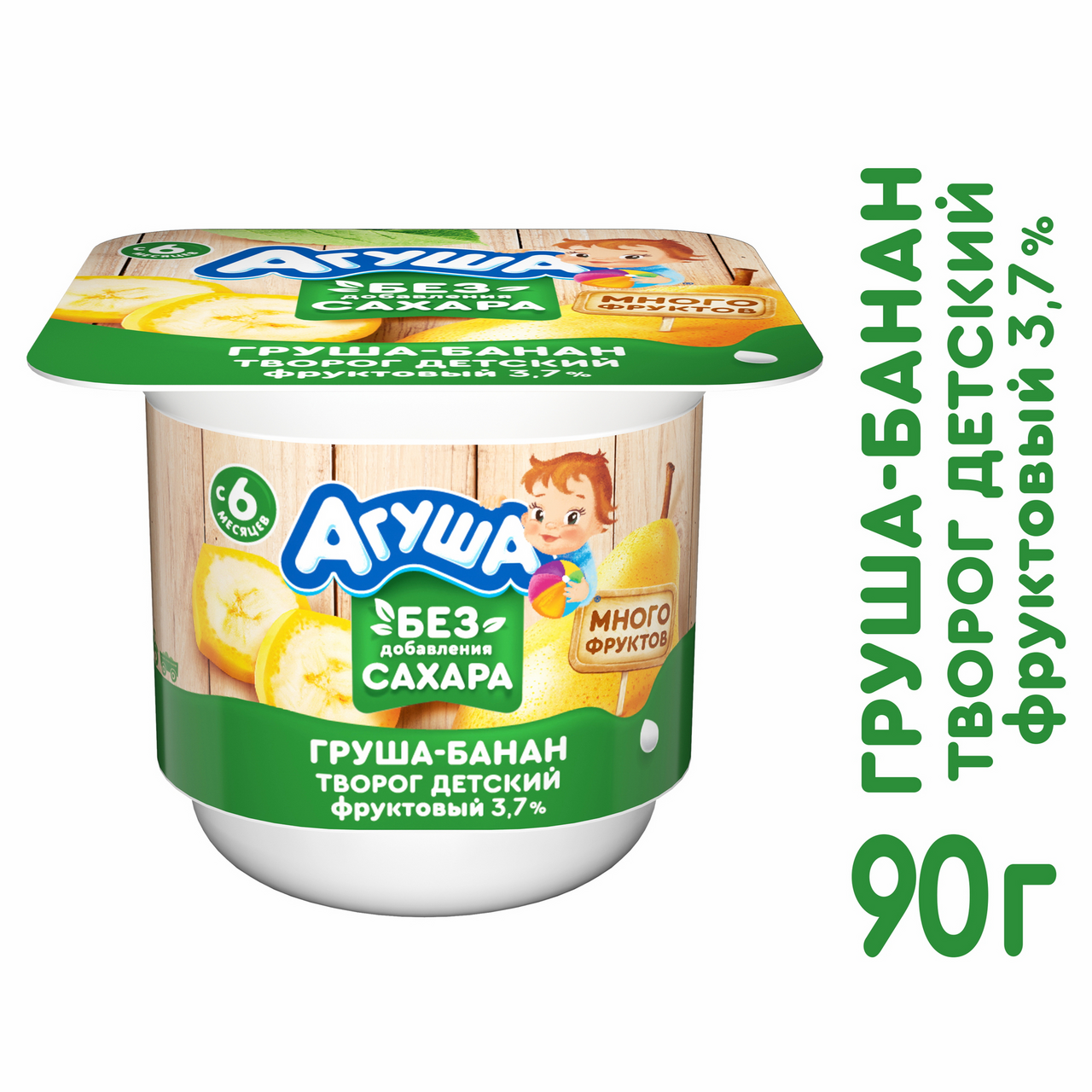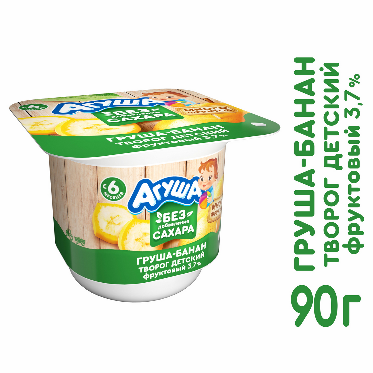 Творог Агуша груша, банан с 6 месяцев 3.7%, 90г