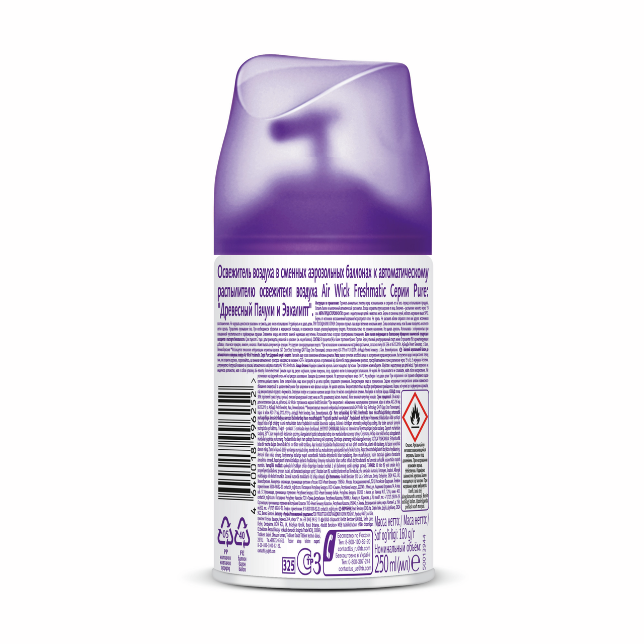 Освежитель воздуха аэрозольный AirWick Freshmatic Pure Древесный Пачули и Эвкалипт сменный баллон, 250мл