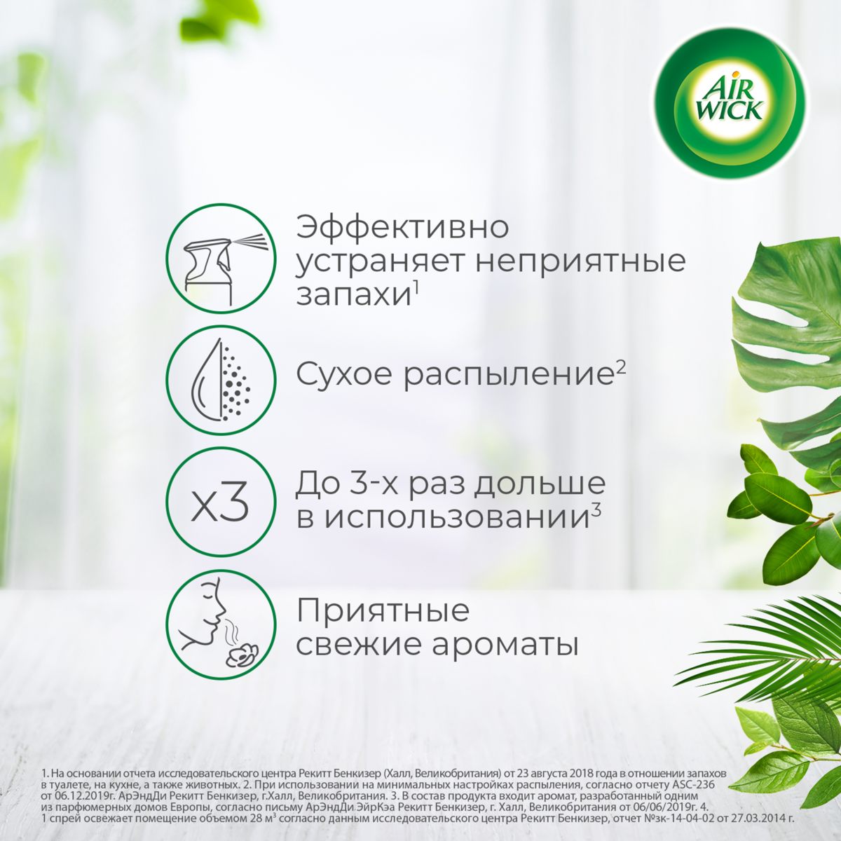 Не содержит воды и эффективно устраняет неприятные запахи без мокрого распыления. Используйте освежители воздуха Air Wick Pure в каждой комнате, наполняя ваш дом свежими и приятными ароматами. Хранить в недоступном для детей и животных месте. Использовать с осторожностью при повышенной чувствительности к парфюмерным отдушкам. Освежитель воздуха не является заменой надлежащих мер гигиены. Использовать только в хорошо проветриваемых помещениях.