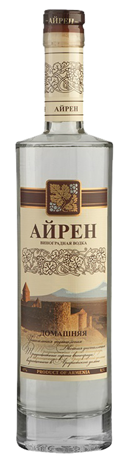 Виноградная водка, изготовленная из виноградного дистиллята, который выкуривается по древней народной технологии. Для производства водки используются аборигенные сорта винограда, культивируемые на плодородных и богатых землях Араратской долины. Предгорья Арарата хранят память о древних событиях и традициях Армении. Водка производится в классическом стиле с применением более медленной дистилляции, что позволяет добиться более мягкого и округлого вкуса. Полученный спирт категории Люкс дополняется умягченной водой из горного источника. Дизайн этикетки разработан специально, чтобы отобразить дух дружелюбной Армении. Гора Арарат, узнаваемые армянские достопримечательности, традиционный виноградный орнамент с легкостью ассоциируют напиток с Арменией. Элементы дизайна идеально сочетаются друг с другом