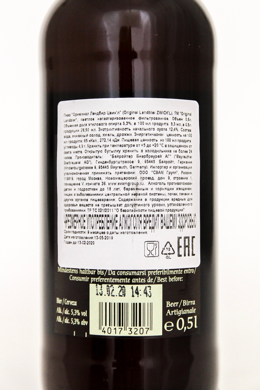 Пиво Original Landbier Zwickl светлое, 0.5л