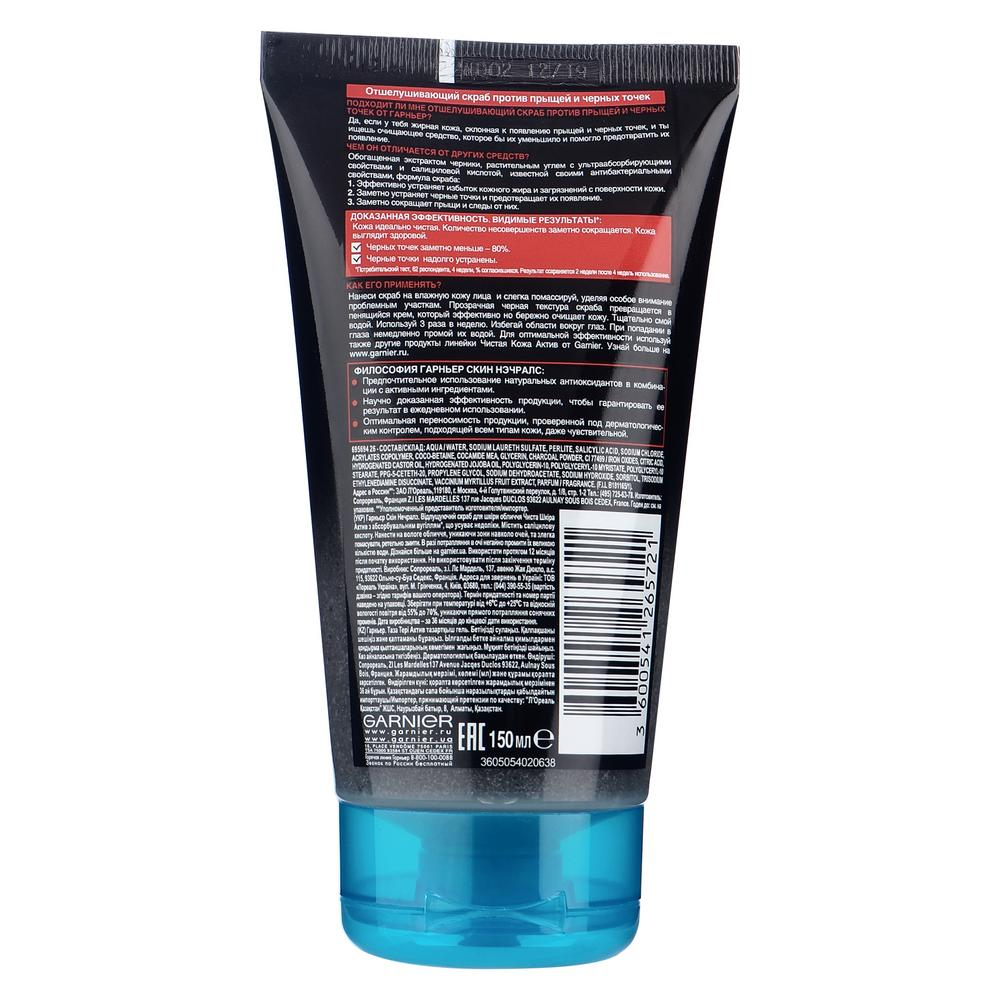 Скраб для лица Garnier Чистая кожа Актив с углем и салициловой кислотой, 150мл