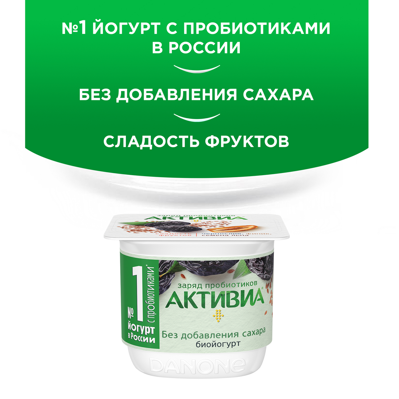 Биойогурт Активиа чернослив-финик-лен 2,9%, 130г