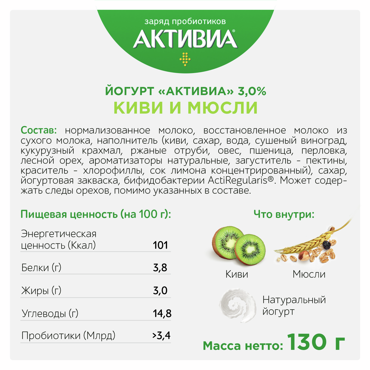 Йогурт Активиа мюсли-киви 2.9%, 130г