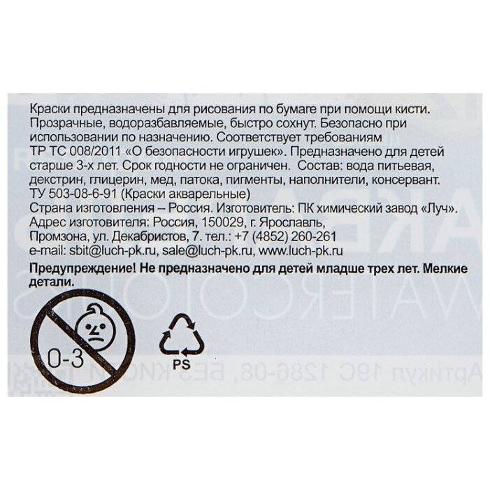 Акварель Луч Медовая без кисточки 32 цвета, 216г