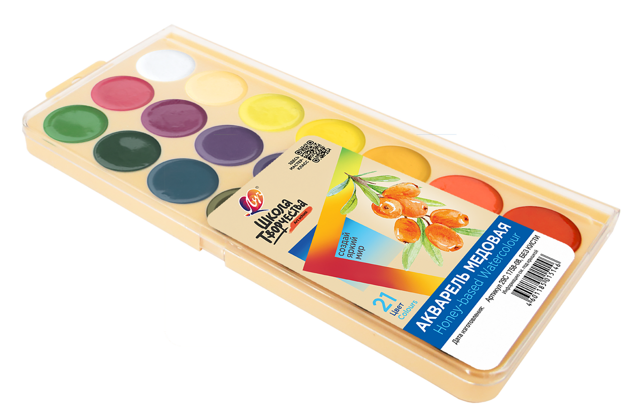 Медовая акварель Школа Творчества - это идеальный выбор для юных художников и тех, кто ценит традиционное качество и удобство. Преимущества:- Эксклюзивные мастер-классы от опытных педагогов, контуры для раскрашивания - пройти по QR-коду на упаковке. - Традиционно высокое качество - акварель изготовлена по проверенной рецептуре с добавлением мёда, что обеспечивает яркие, насыщенные цвета. - Кюветы классической круглой формы минимально соприкасаются - краска не перетекает из кювета в кювет. - Удобное расположение цветов - оттенки разделены на группы холодных и тёплых тонов, что помогает детям быстрее ориентироваться и создавать гармоничные рисунки. Упаковка: пластиковая подложка с европодвесом. Медовая акварель Школа Творчества - это яркие эмоции, удобство и вдохновение для каждого художника.