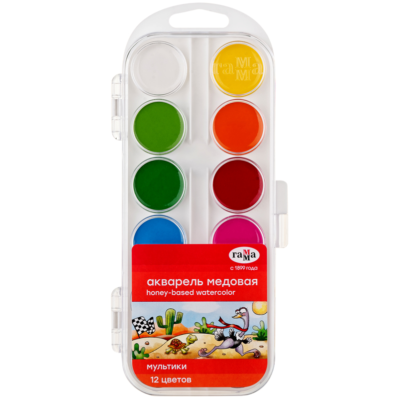 Краски акварельные Гамма Мультики без кисти 12 цветов, 118г