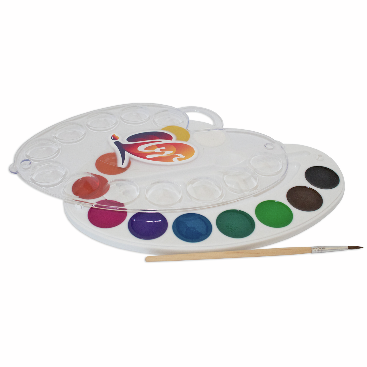 Акварель Палитра 12 цветов - высококачественная краска для детского творчества, изготовленная по классической рецептуре. Прозрачная крышка коробочки от красок спроектирована в виде палитры для смешения.