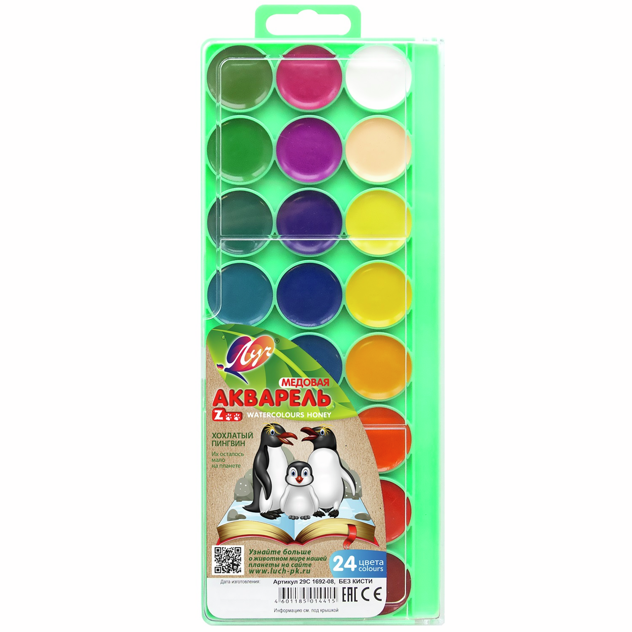 Краски акварельные Луч ZOO 24 цвета без кисточки, 77г