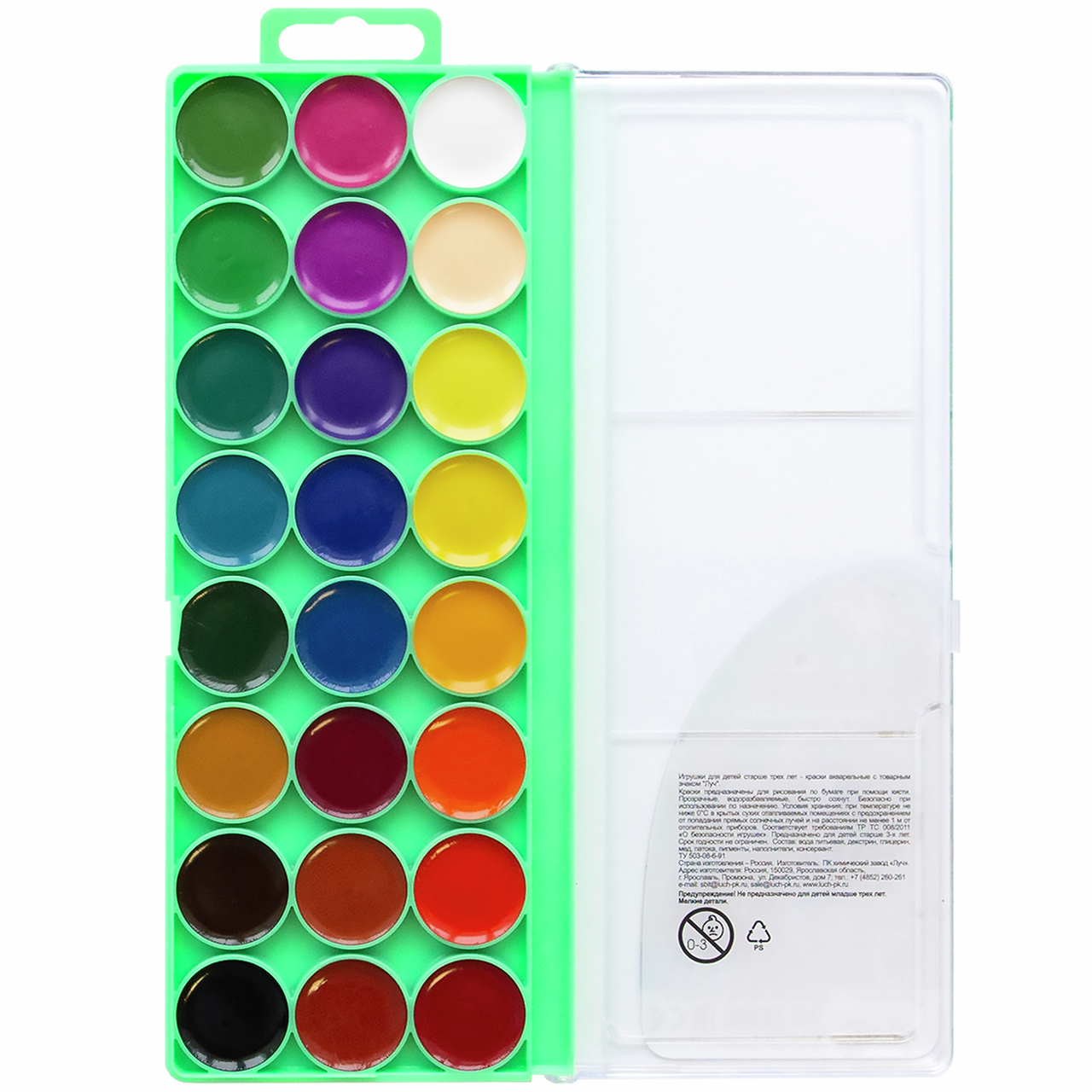 Высококачественная краска для детского творчества, изготовленная по классической рецептуре с использованием мёда. Яркие, чистые цвета. Прозрачная основа при нанесении, без вкраплений. Прекрасно размывается и разносится по поверхности бумаги. Легко наполняется на кисть. Краски смешиваются между собой, сохраняя насыщенность цвета. Большое количество краски в кюветах.