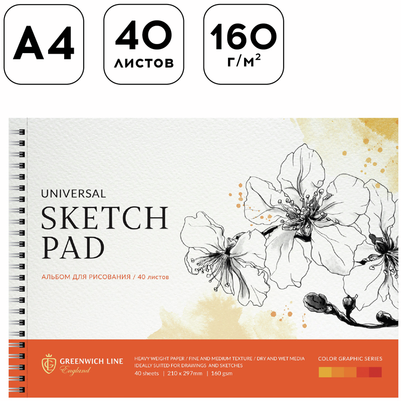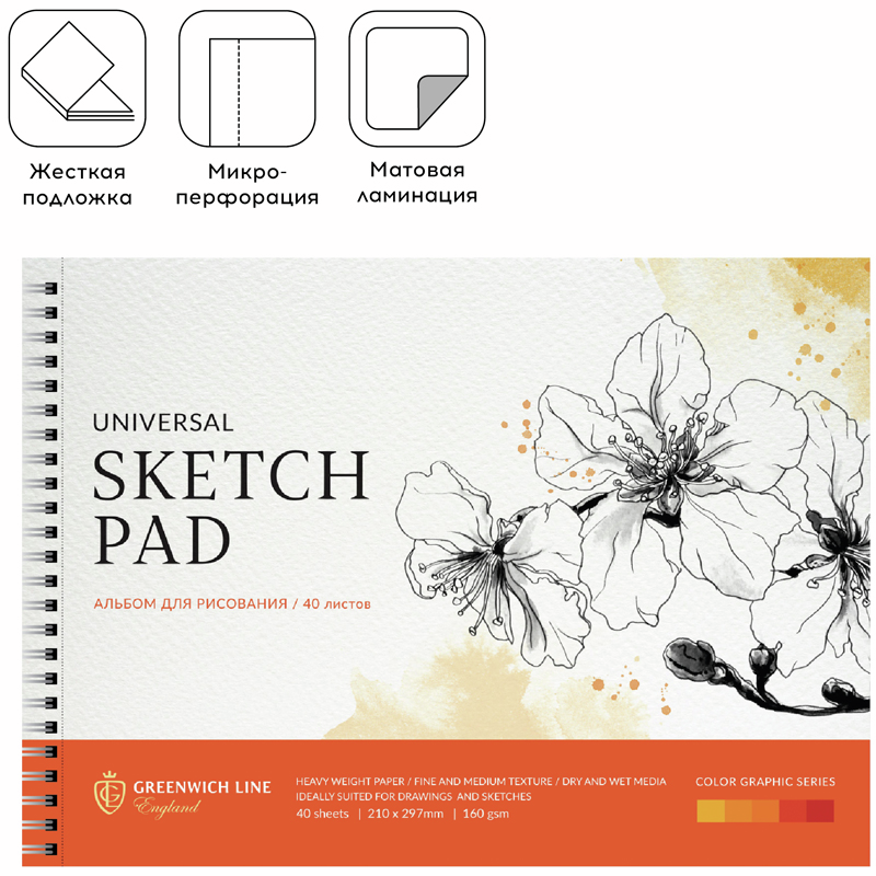 Альбом Greenwich Line на спирали с перфорацией А4 120г, 40л
