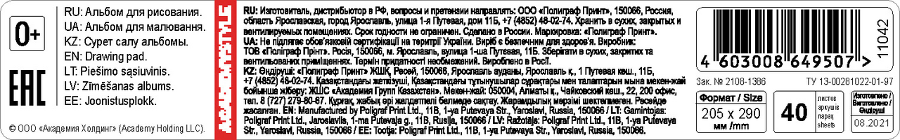Альбом предназначен для рисования акварелью, гуашью, чернографитным карандашом, сухой пастелью и восковыми мелками.