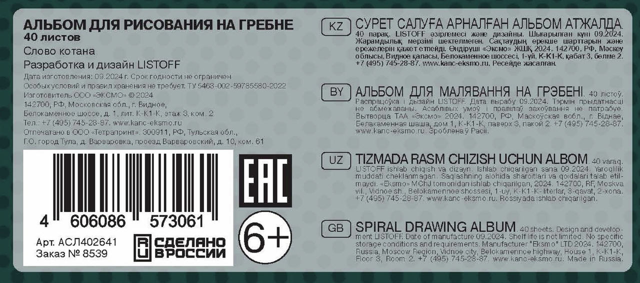 Альбом для рисования Listoff Слово котана на гребне, 40л