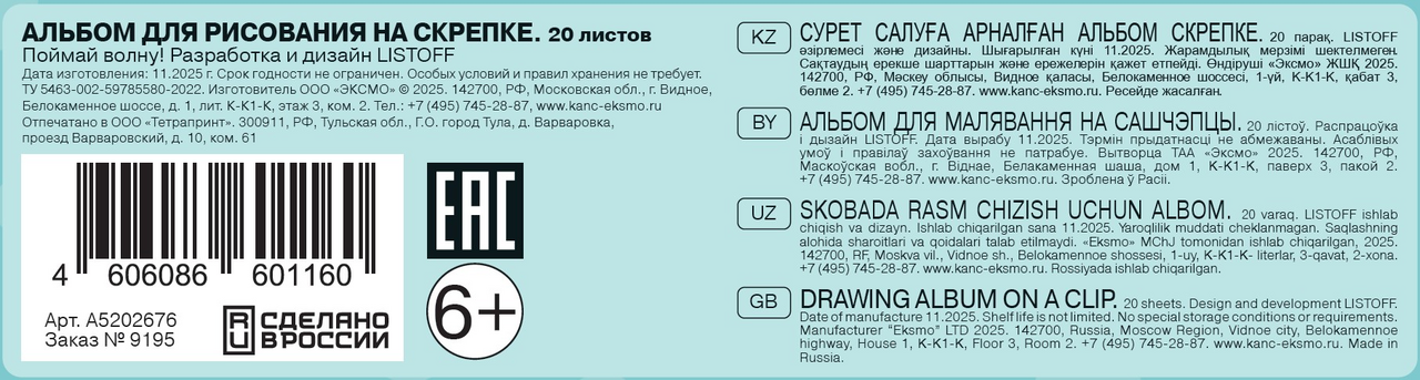 Эти милые альбомчики формата А5 так удобно класть в рюкзак и брать с собой на прогулку. Ведь настоящих художников вдохновение может застать где угодно. Альбомы безопасны для детского творчества и отлично подходят для рисования сухими материалами (карандаши, пастель, восковые мелки, ручки, линеры и так далее). В альбомах 20 листов, белая офсетная бумага плотностью 110г/м, скоба. На задней стороне обложки увлекательная развивающая игра.