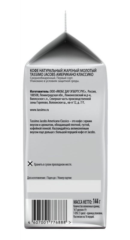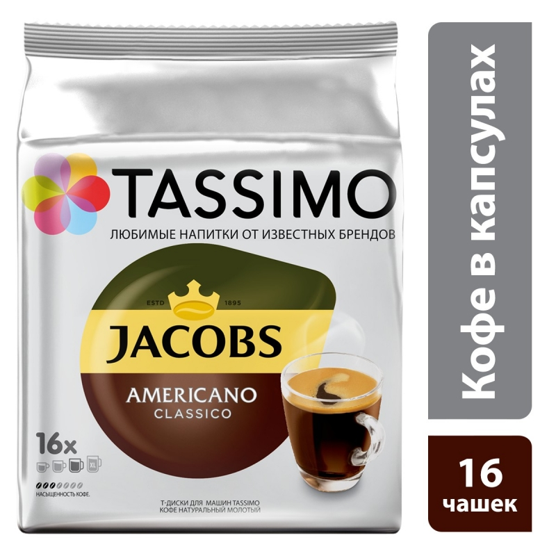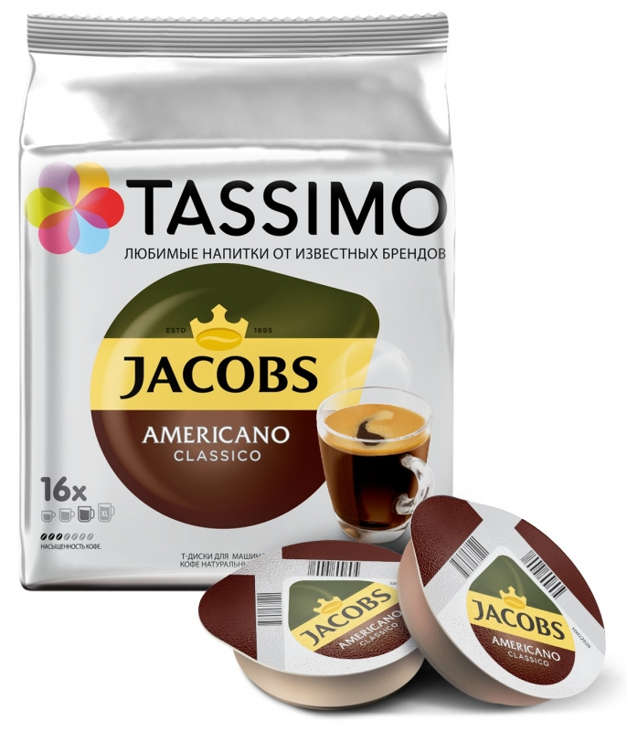 Кофе с ярким вкусом и ароматом, обладающий бархатистой пенкой. Наслаждайтесь великолепным вкусом еще дольше с большой порцией кофе от Jacobs. В каждой упаковке находится 16 Т-дисков.В каждом Т-Диске содержится точно дозированная порция молотого кофе. Каждый из этих специально разработанных Т-Дисков имеет уникальный штрих-код, который считывается кофемашиной Tassimo. В этом коде указан объем воды, время приготовления и оптимальная температура, необходимая для получения чашки безупречного напитка.
