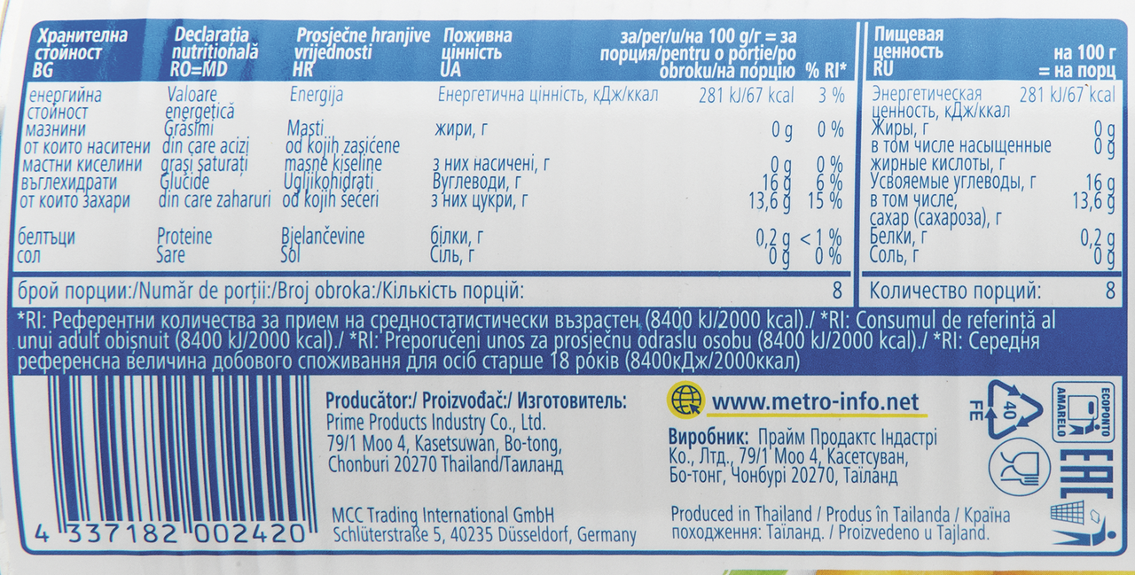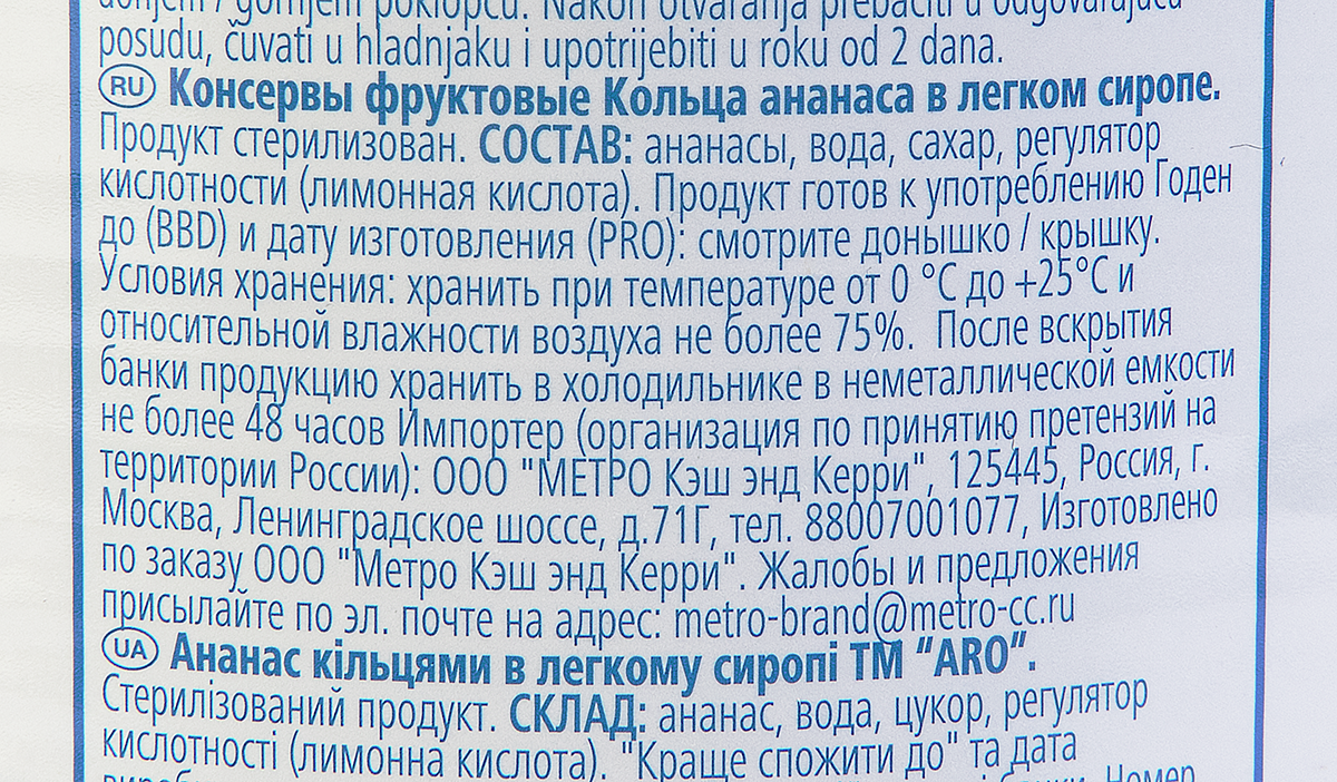 Ананас, вода, сахар, регулятор кислотности (лимонная кислота).
