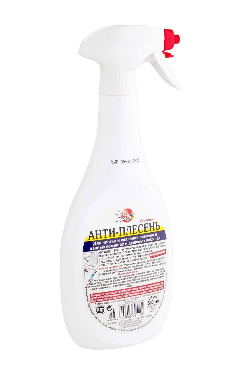 Анти-плесень для чистки и удаления плесени в ванных комнатах и душевых кабинах. Антиплесень - антибактериальное средство против плесени и грибка. Предотвращает появление бактерий и грибков на керамической плитке, раковинах, душевых и т.п. Придает поверхности блеск на долгое время. Способ применения: распылить средство на обрабатываемую поверхность, подождать несколько секунд, протереть с помощью смоченной в воде губки или тряпки и смыть водой. При использовании средства рекомендуется одевать перчатки. Не давать средству засохнуть на обрабатываемом участке до окончания чистки.
