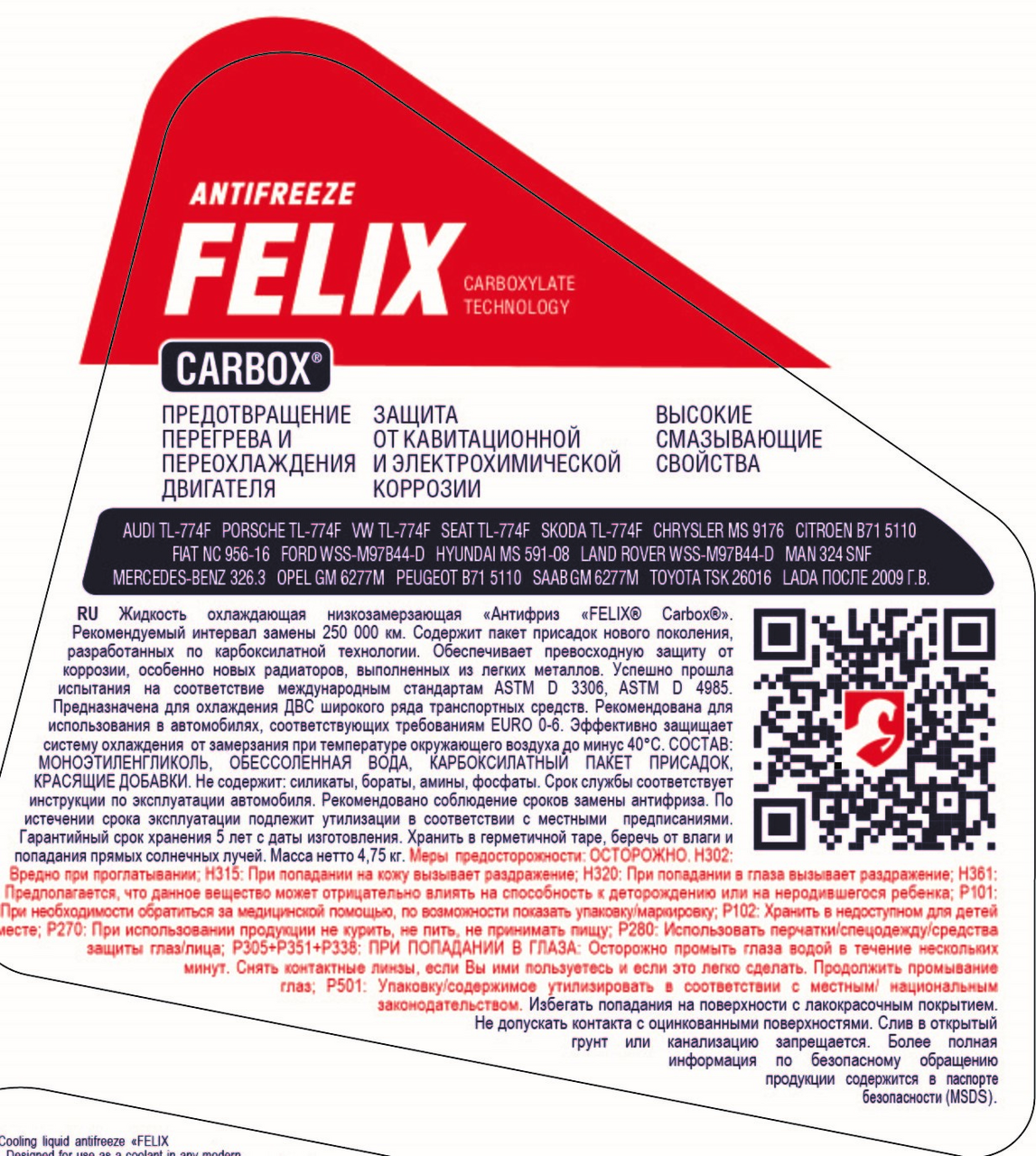 Профессиональный ант��фриз с увеличенным ресурсом эксплуатации (тип OAT). Соответствует требованиям стандарта G12+ по классификации Volkswagen. Отвечает требованиям спецификаций импортных автопроизводителей и международным стандартам SAE J 1034, O-Norm V 5123, BS6580:2010, KSM2142, JIS K 2234. Единственный российский антифриз, успешно прошедший полный цикл испытаний в международной лаборатории ABIC TESTING LABORATORIES, INC по стандартам: ASTM D 3306, ASTM D 4985. Полностью совместим с оригинальными (OEM) антифризами, разработанными по передовой карбоксилатной технологии. Обладает увеличенным сроком эксплуатации – 250 000 км пробега или 5 лет использования (без смешивания с другими типами охлаждающих жидкостей). Цвет: красный. Готов к применению. Обладает рядом официальных допусков и одобрений для отечественных автомобилей. Используется для первой конвейерной заливки на многих отечественных и зарубежных сборочных предприятий.