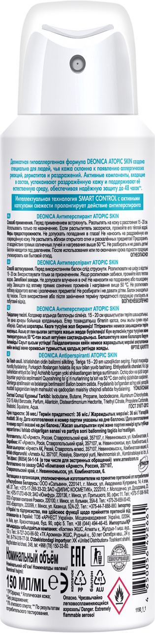 Антиперспирант-спрей Deonica Pro Atopic Skin, 150мл