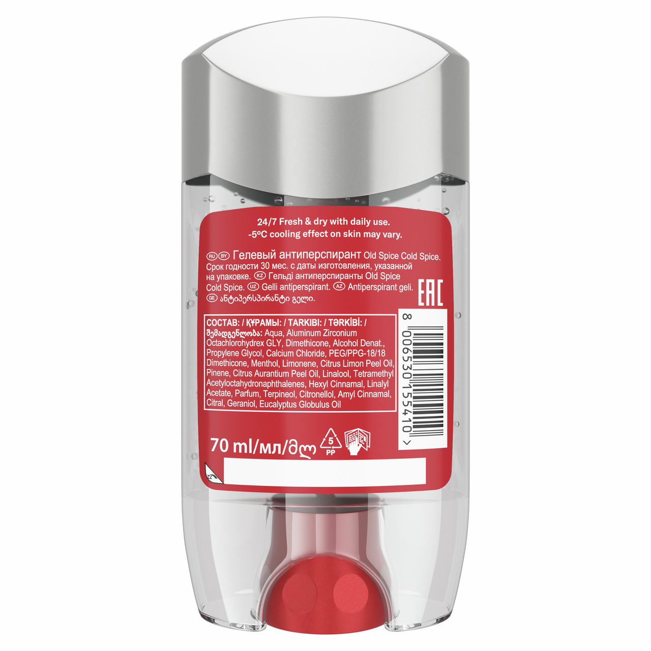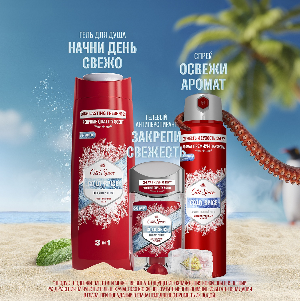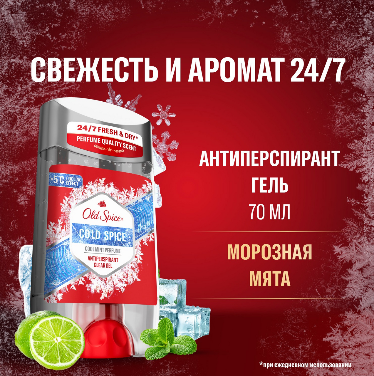 Держитесь, прямо по курсу леденящая свежжжесть. Все мы любим жаркое лето, но сборы на важную встречу в +30С становятся бесполезной затеей - ты только сходил в душ, надел чистую рубашку, а она уже вся мокрая от пота. Но будь уверен, все поправимо с линейкой Cold Spice. Она станет твоим спасением в любой день, требующий свежего перезапуска. Cold Spice не только защищает от пота, но и дарит ощущение холодка на коже, охлаждая твой пыл (но не сердце) с ароматом ледяной мяты. Зарядись бодростью и морррозной свежестью Old Spice с самого утра - попробуй гель для душа+шампунь Cold Spice, затем используй гелевый антиперспирант из той же коллекции, чтобы у пота не осталось шансов. А чтобы освежить аромат в течение дня или перед важным вечерним событием, используй антиперспирант-спрей (только не забудь хорошо встряхнуть.). Преимущества: - Гелевый антиперспирант 70мл - защищает не только от запаха, как дезодоранты, но и от самого пота (влаги); - Эффект мгновенного охлаждения кожи до -5С; - Длительная свежесть и аромат премиум парфюма на весь день; - Быстро высыхает, не оставляет следов на одежде.