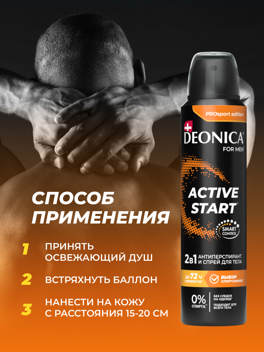Дезодорант-антиперспирант-спрей Deonica Men Active Start, 150мл