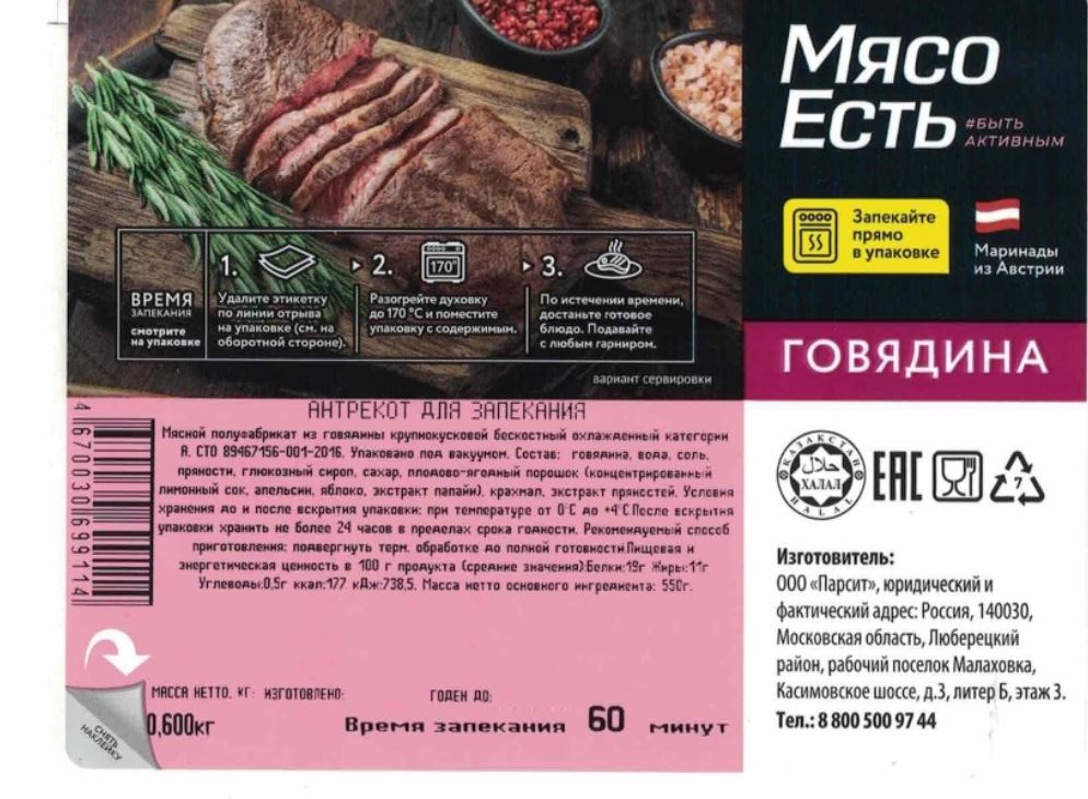 Антрекот говяжий Мясо есть! для запекания охлажденный, 600г