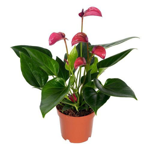 Многолетнее вечнозеленое травянистое растение с возрастом формирующее невысокий стебель. Декоративно цветущее растение с продолжительным и обильным цветением, антуриумы часто дарят мужчинам. Черешки листьев длинные, тонкие. Листья темно – зеленые, глянцевые, сердцевидной формы, с углубленными, расходящимися от основания листовыми прожилками. У некоторых разновидностей антуриума листовые прожилки выделены более светлым оттенком. Края листовых пластин цельные. В период цветения растения формируют невысокие тонкие цветоносы, на вершине которых находятся соцветия-початки с небольшими желтыми, оранжевыми или зеленоватыми цветками. Основным украшением растений в период цветения являются покрывала, окружающие соцветия. У разных сортов покрывала могут быть окрашены в красный, розовый, фиолетовый, зеленоватый или белый оттенки.