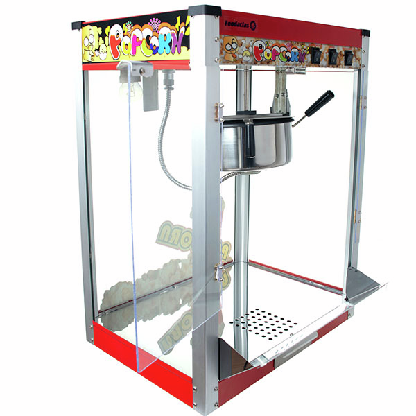 Настольный аппарат для попкорна Gastrorag HP-6A применяется на предприятиях фастфуда и торговли (в кинотеатрах, торговых центрах) для приготовления сладкого и солёного попкорна. Данное оборудование имеет опрокидывающийся котёл с антипригарным покрытием, фильтр для нераскрывшихся зёрен, подсветку и нагревательный элемент, поддерживающий нужную температуру готового попкорна.