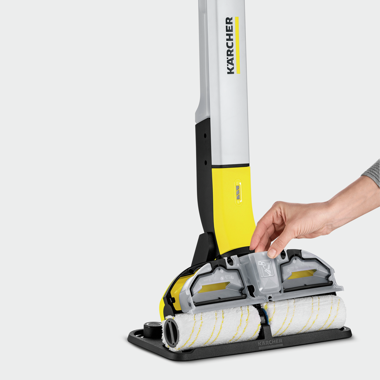 Вымыть весь пол чистой водой позволяет аппарат FC 3 Cordless, в котором предусмотрена инновационная функция самоочистки: вращающиеся роликовые щетки непрерывно увлажняются чистой водой и очищаются от грязи, которая собирается в бачок для грязной воды. Благодаря этому на 20 % повышается эффективность уборки по сравнению с использованием швабры.