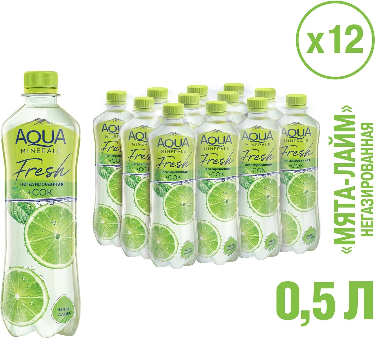 Вода сокосодержащая Aqua Minerale со вкусом мяты и лайма негазированная, 500мл x 12шт