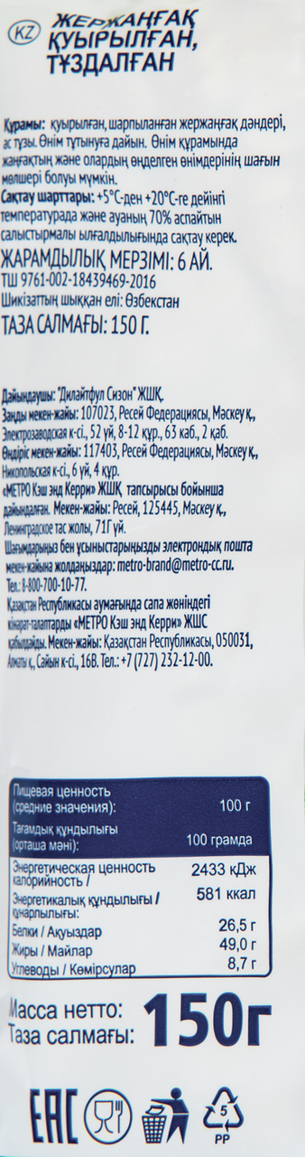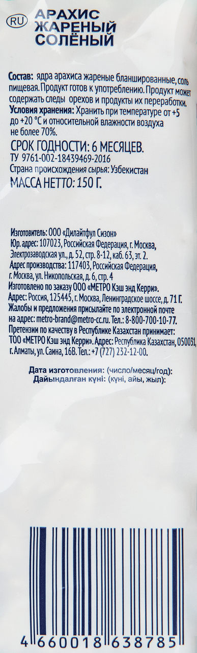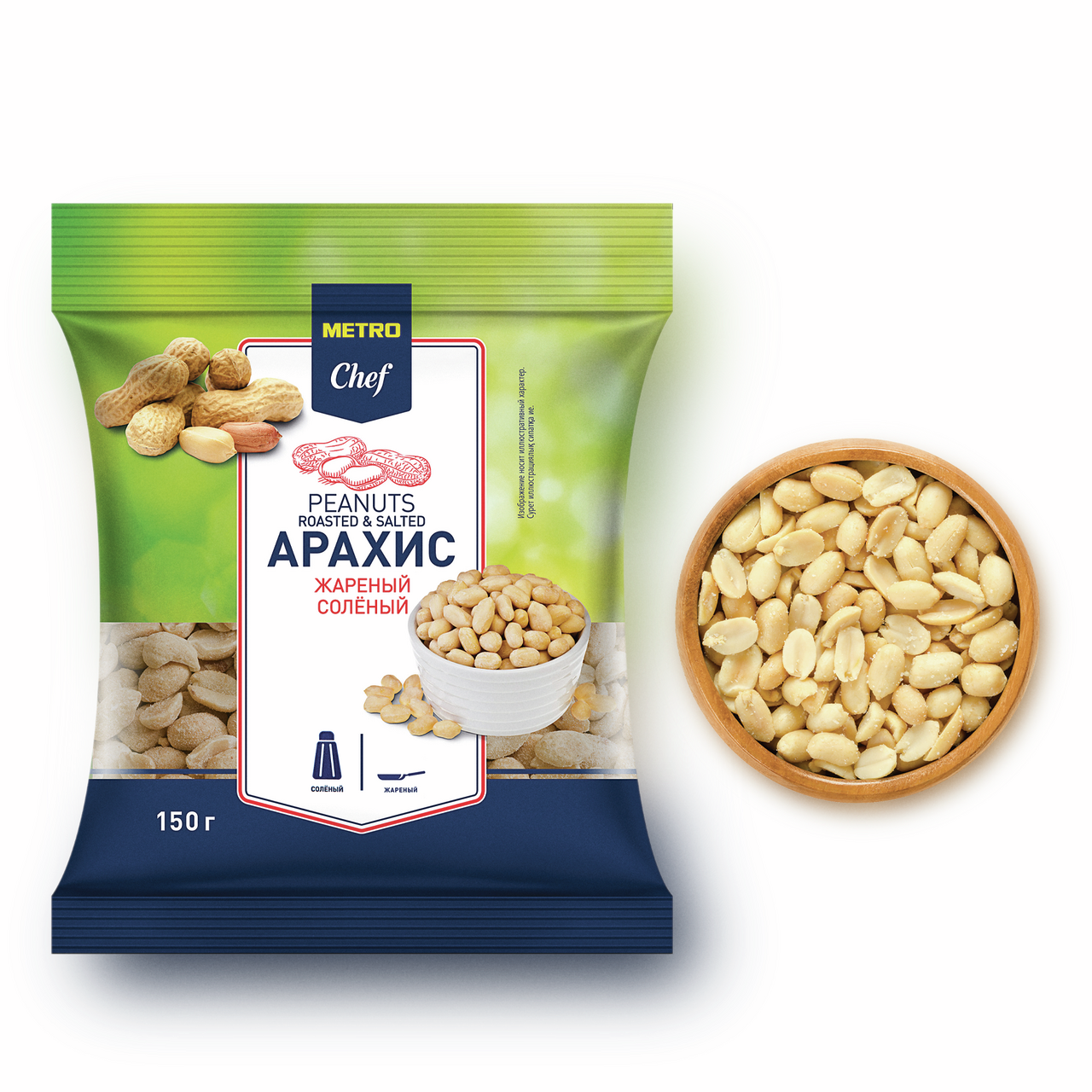 Арахис METRO Chef жареный соленый, 150 г – вкусное и питательное лакомство, отличающейся высокой калорийностью. Регулярное употребление земляного ореха устраняет бессонницу, стимулирует работу кишечника, улучшает память, концентрацию и внимание. Ядра богаты витаминами, микроэлементами и минералами, поэтому оказывают на организм положительное воздействие. Арахис помогает эффективно бороться с депрессией, нормализует концентрацию сахара в крови, ускоряет обмен веществ. Орех полезен при восстановлении после перенесенного гриппа или в послеоперационный период, а тех, кто ведет активный образ жизни, наполняет бодростью и дает прилив энергии. Соленый арахис используют для присыпки или начинки в несладкой выпечке, также дробят и добавляют в овощные, мясные салаты и подают в качестве закуски к охлажденным напиткам.