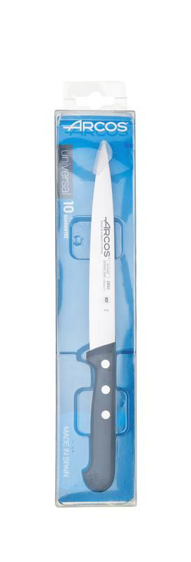 Нож для рыбы Universal ARCOS, 17 см предназначен специально для постоянного интенсивного применения, будет незаменимым инструментом повара как на профессиональной кухне, так и в домашних условиях. Изготовлен методом штампования из высококачественной нержавеющей стали Nitrum, оснащен классической эргономичной ручкой черного цвета. Изделие комбинирует в себе плавные линии и классический дизайн. Металл высокого качестве, практически не нуждается в заточке, мало подвержен деформации, возникновению зацепок и зазубрин. Рукоять выполнена из полипропилена. Материал прочный, но легкий. Заклепки шпунтованные, состоят из алюминия, не подвластного коррозии. Приобрести нож для рыбы Universal ARCOS, 17 см можно в торговом центре METRO.Бренд: Arcos.Серия: Maitre. Страна производитель: Испания.Предназначение: ножи для рыбы.Тип ножа: штампованный.Материал лезвия: нержавеющая сталь NITRUM.Материал ручки: полипропилен (РР).Цвет ручки: черный.Твердость по шкале Роквел: 53-56.Длина: 17 см.Вес: 0,238 кг.
