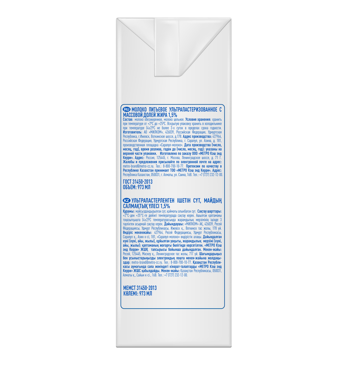- Жирность, % 1.5