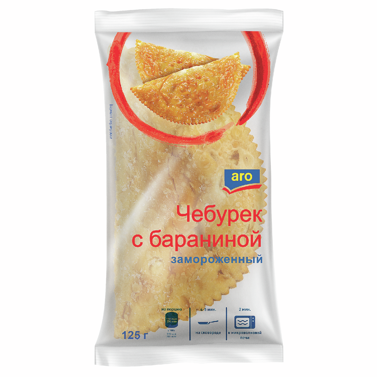 О происхождении чебурека до сих пор происходят споры, ведь похожее блюдо в виде лепешки с начинкой внутри есть в кухнях многих народов мира. В нашей стране чебурек особенно любим, о чём говорит большое количество всевозможных кафе-чебуречных. Чебуреки ARO с бараниной замороженные позволят попробовать любимый продукт прямо дома. Пять минут - и чебурек готов. Его можно дополнить сметаной, овощами, и блюдо станет полноценным обедом.