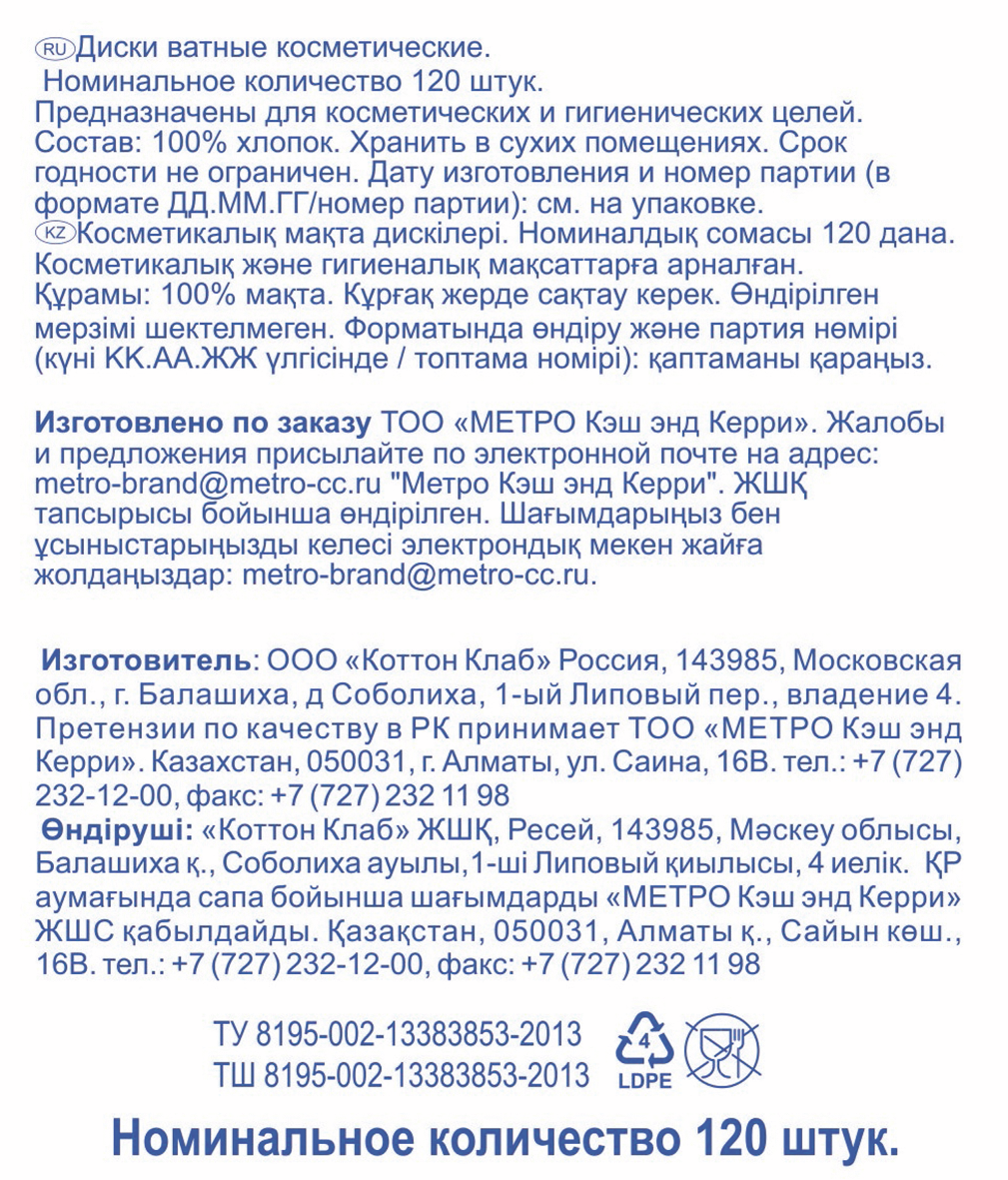 aro Диски ватные косметические, 120шт х 2 упаковки предназначены для косметических и гигиенических целей. 100% хлопок.