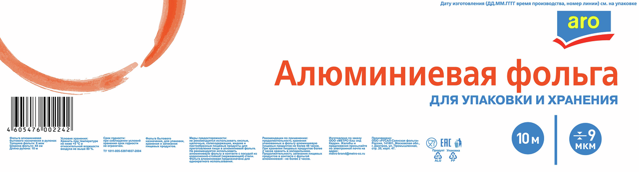 aro Фольга алюминиевая 9мкм, 44 см х 10м