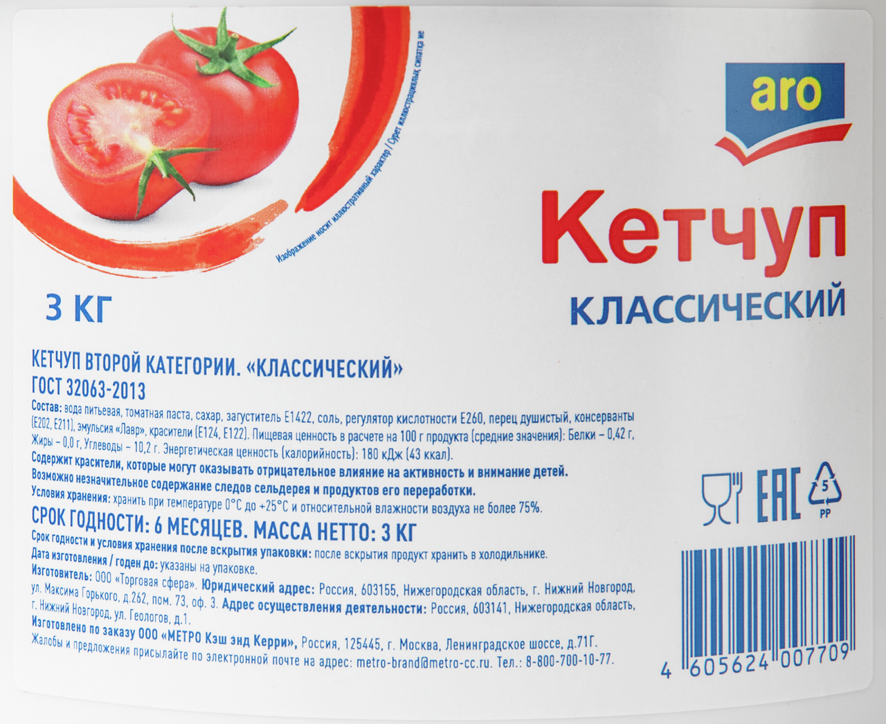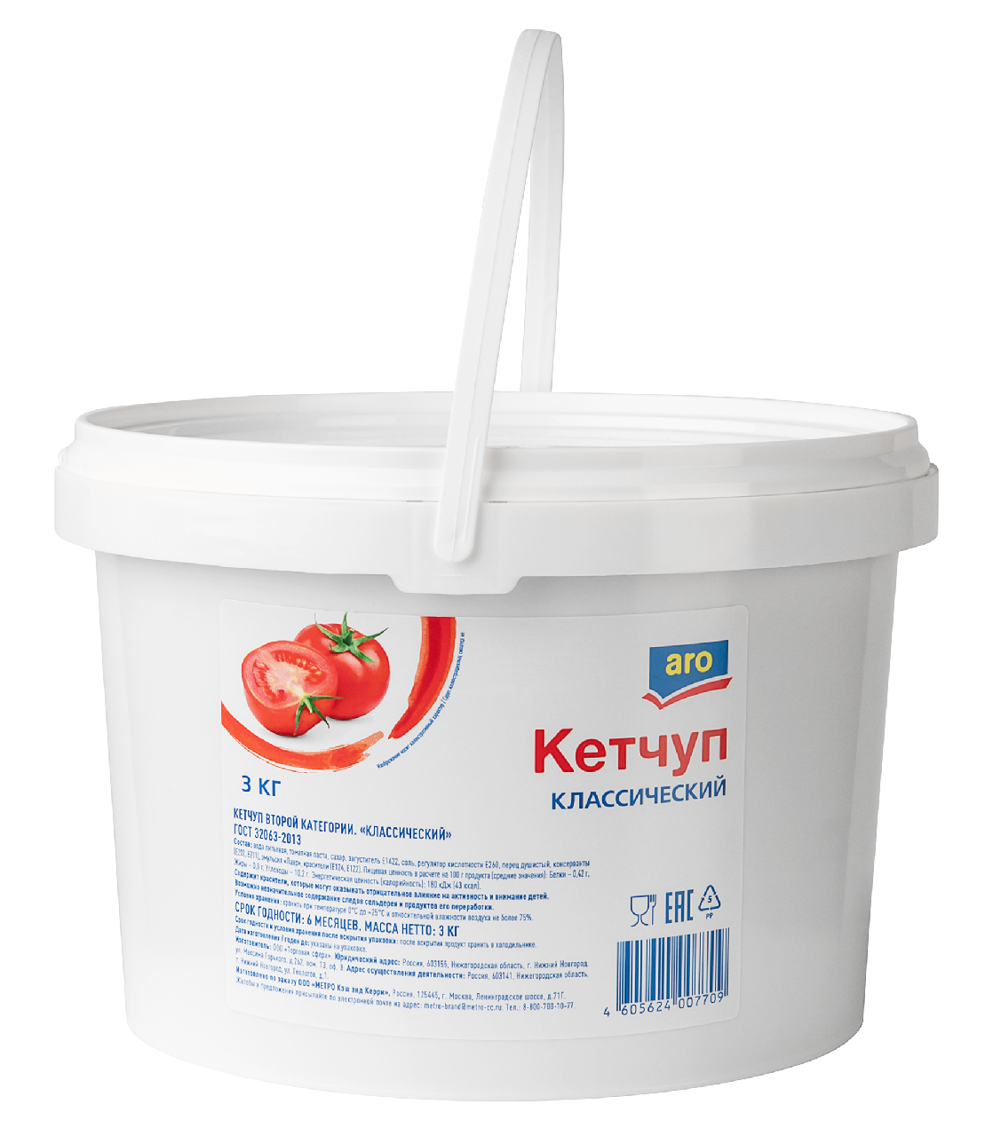 Классический кетчуп aro 3кг произведен с использованием универсальной рецептуры позволяет использовать его повсеместно к различным блюдам для придания вкуса. Оптимальное решение для ресторанов, кафе, столовых и домашних хозяйств, стремящихся обеспечить большой запас качественного продукта. Упаковка в пластиковое ведро объемом 3кг обеспечивает удобство хранения и экономичность использования.