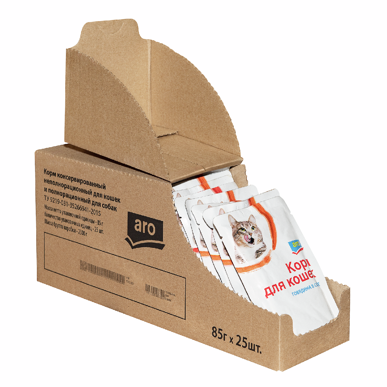Вкусный и натуральный aro Корм для кошек говядина в соусе, 85г обязательно понравится вашему питомцу. Нежный аромат и непревзойденный вкус, мягкая приятная текстура. Вся польза природы для вашей кошки, чтобы она радовала вас здоровьем и красотой день за днем!