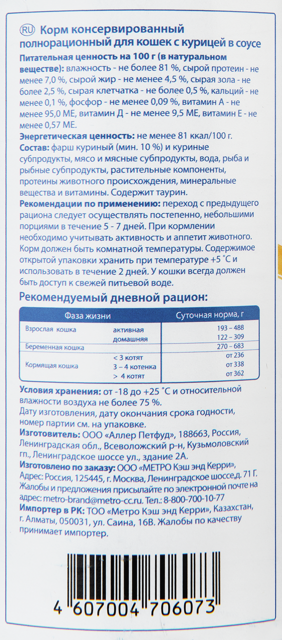 - Тип Влажный корм для кошек