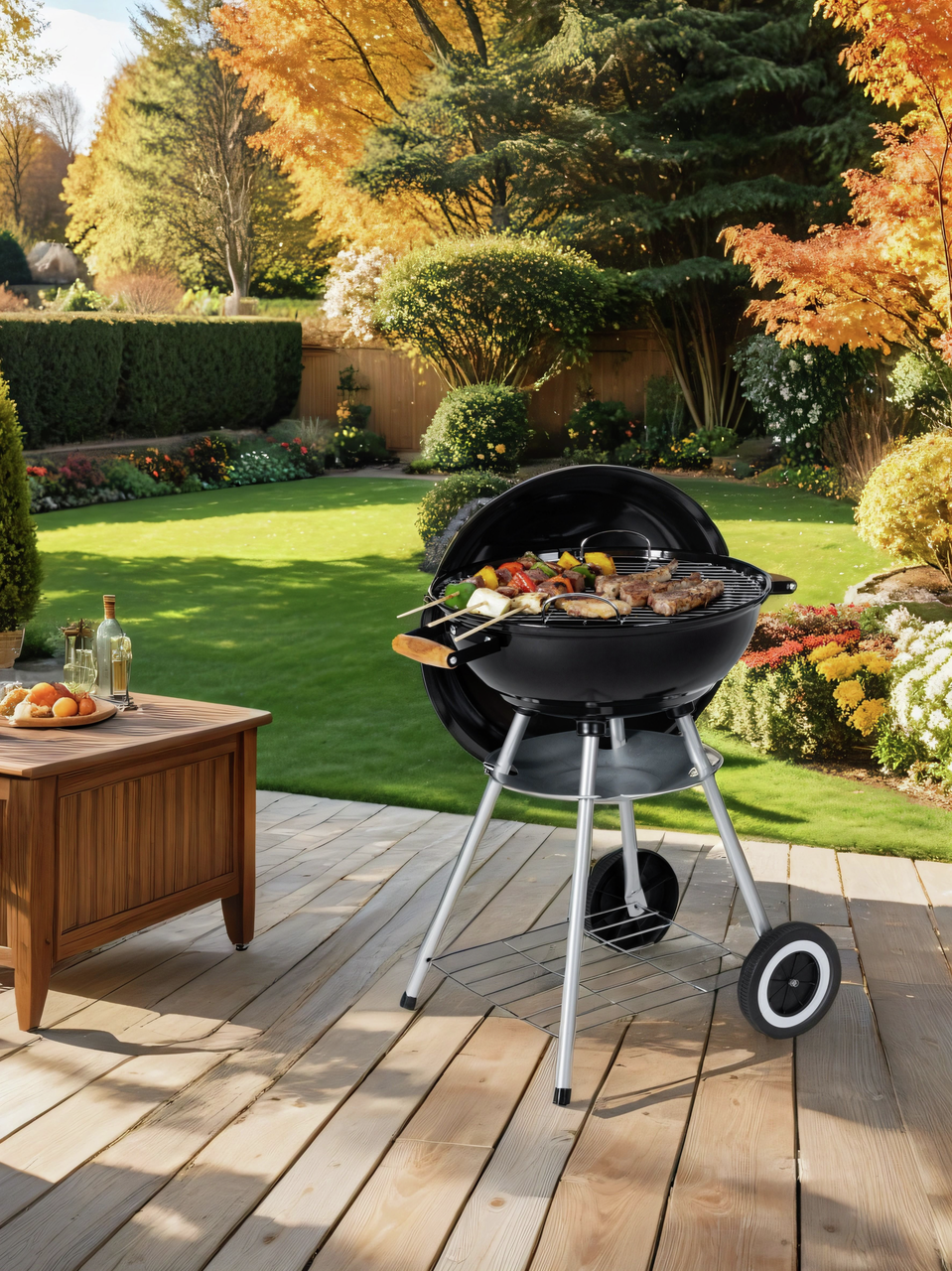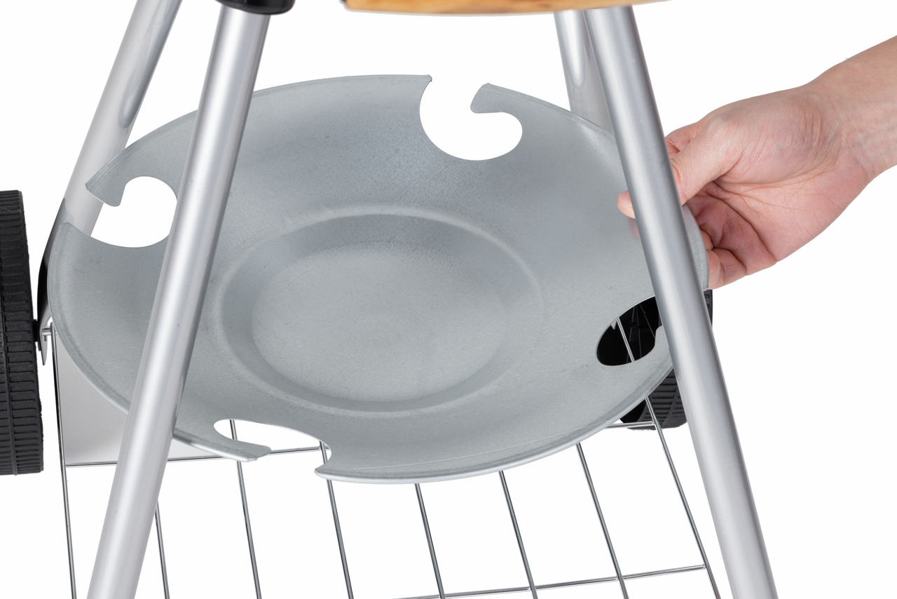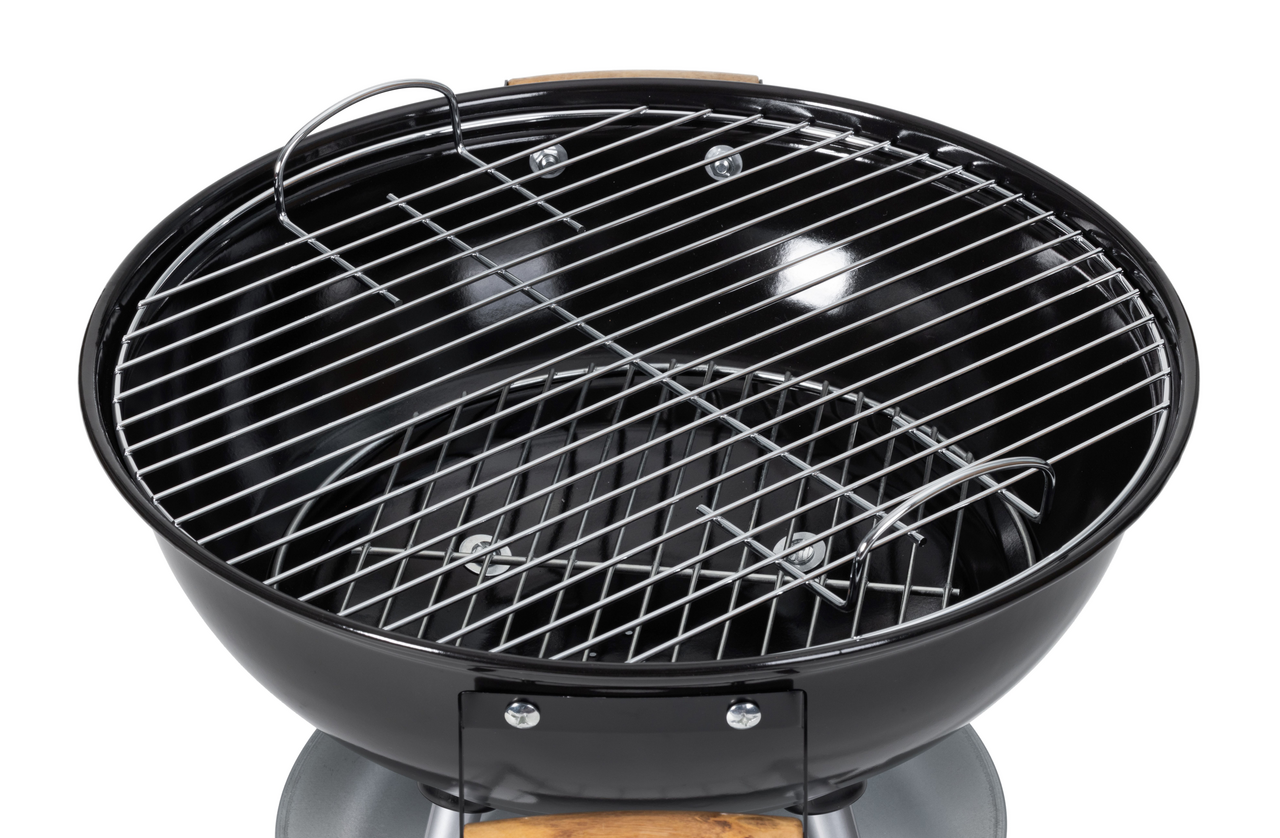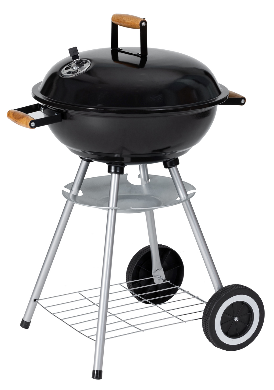 Угольный гриль Tarrrington House aro 40 см имеет сферическую форму, что обеспечивает равномерное распределение тепла. Благодаря такой конструкции модель оптимальна не только для жарки, но и для медленного томления мяса или других продуктов. Гриль Tarrrington House Aro 40 см предназначен для совместного использования с древесным углем или брикетами. Особенности гриля: ● Надежная конструкция. Корпус произведен из нержавеющей стали. Порошковая краска защищает металл от атмосферных осадков. ● Крышка. Оптимальна для быстрого разогрева, тушения продуктов и получения аромата дымка. При открытии крышка надежно фиксируется на специальных петлях. ● Удобные ручки. Имеют деревянные вставки, что помогает избежать ожогов. ● Качественные решетки. Произведены из нержавеющей стали. Помогают создать на мясе аппетитные полоски, оптимальны для жарки стейков, овощей, рыбы, курицы. Модель имеет две решетки, одна из которых предназначена для углей, другая — для продуктов. ● Вентиляционные отверстия. Обеспечивают эффективную циркуляцию воздуха, помогают поддерживать жар. Широкие колеса обеспечивают маневренность устройства. Для хранения различных кухонных принадлежностей в конструкции предусмотрена съемная подставка. Вес 4 500кг.