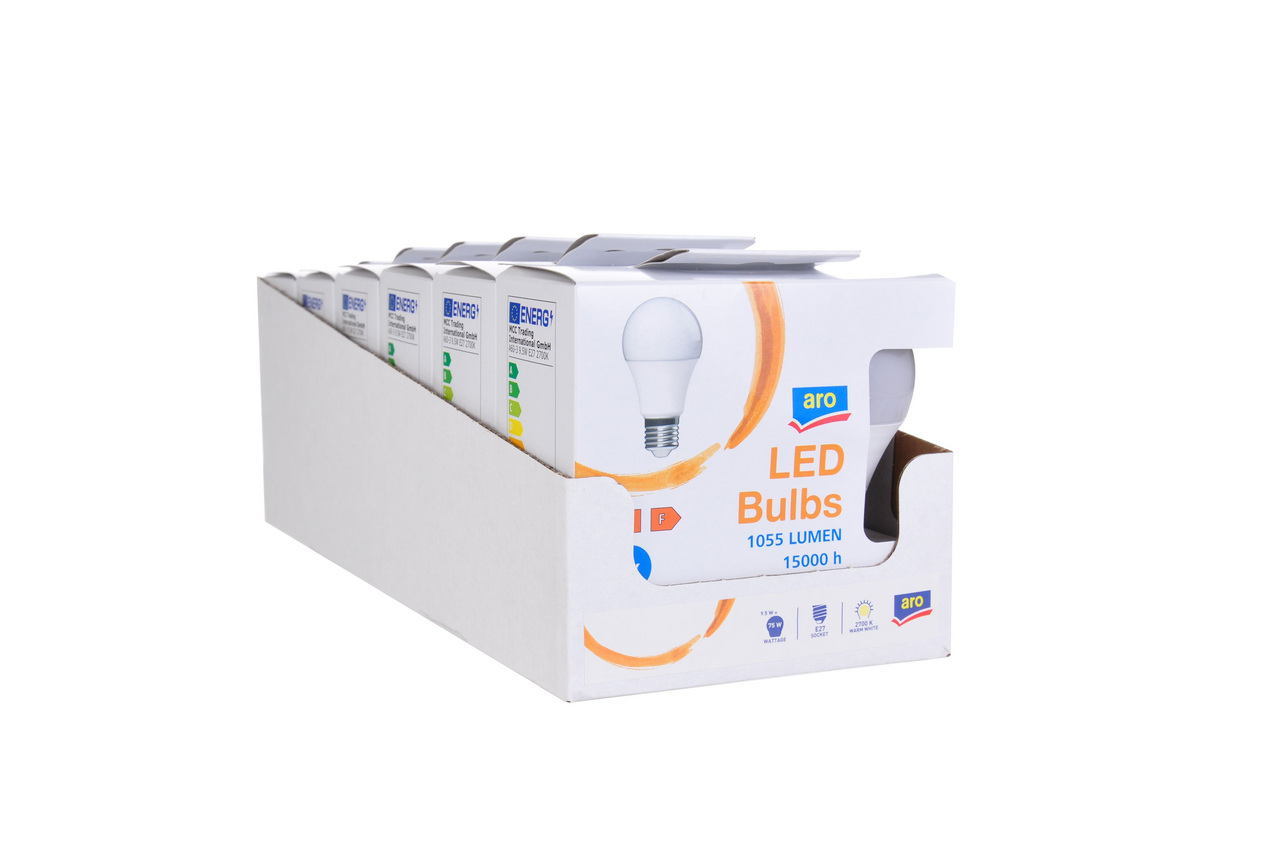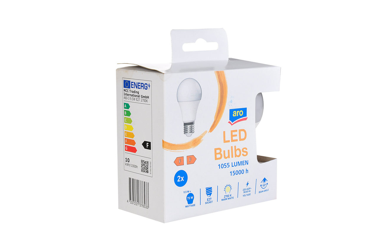 aro Лампа светодиодная E27 2700K Led 9,5Вт груша, 2шт