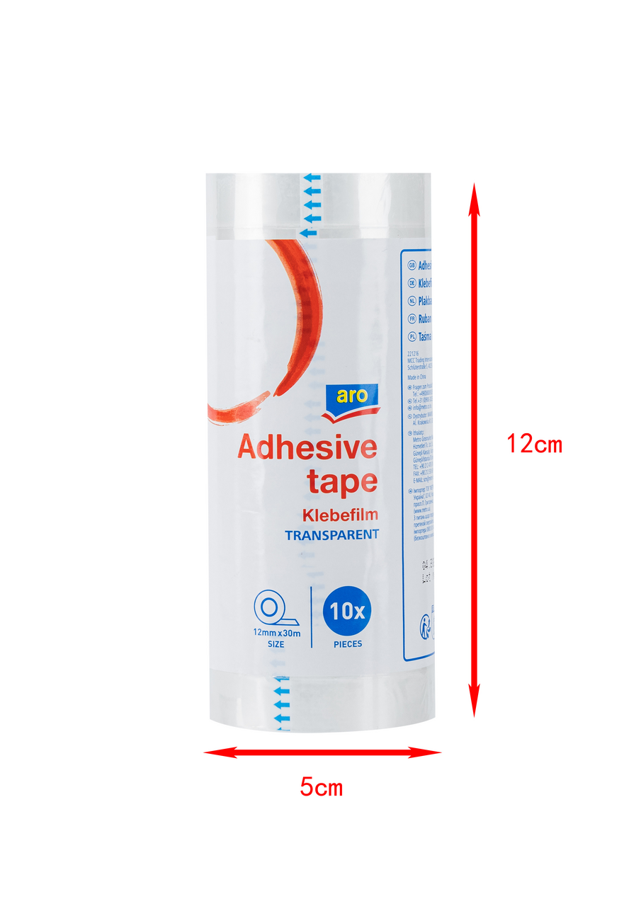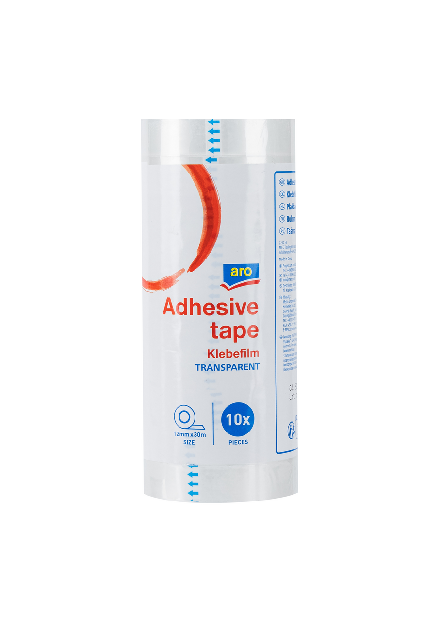 Клейкая лента aro прозрачная, 15 мм х 30 м, 10 шт. предназначена для скрепления различных документов, приклеивания временных конструкций, а также для упаковки посылок, бандеролей и мелких пакетов. Компактный моток ленты поставляется на пластиковой удобной тубе, которая имеет стандартные размеры и подходит для использования в автоматических диспенсерах. Обратная сторона ленты с клейким слоем отлично фиксируется на разных поверхностях, а также легко удаляется с твердых гладких поверхностей, не оставляя следов.