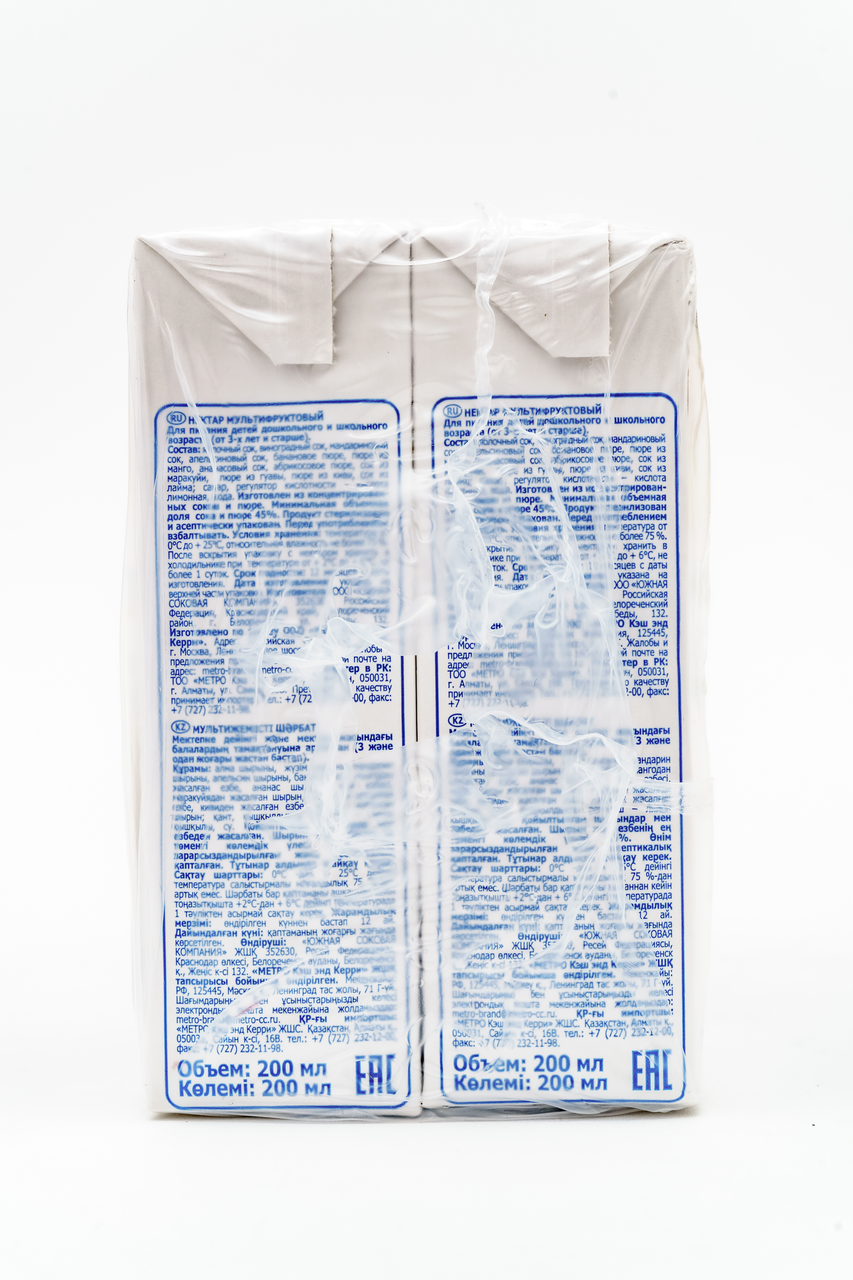 Мультифруктовый сок имеет свой оригинальный вкус и характер, потому что это микс из различных фруктов: персик, киви, ананас, маракуйя, апельсин и, конечно, яблоко. Именно сок из зелёных яблок снижает возможность возникновения аллергической реакции у детей на экзотические фрукты, которые очень полезны и обеспечивают организм целой гаммой полезных витаминов и микроэлементов. Для питания детей с 3-х лет.